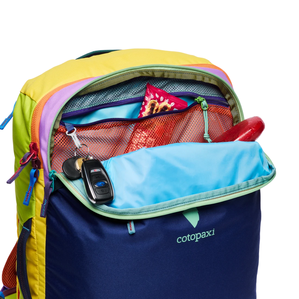The Cotopaxi Allpa 42L Travel Pack - Del Día is the perfect solution for adventurers seeking a spacious, durable, and eco-friendly travel pack. Crafted from deadstock fabric, each bag is uniquely designed while maintaining the trusted features of the Allpa series.
