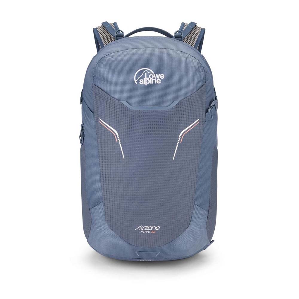 The Lowe Alpine AirZone Active 22L Day Pack offers cool, dry comfort for fast-paced hikes with its breathable AirZone LT™ back system. Built from durable ripstop nylon with a HydroShield coating, it features hydration compatibility, secure pole attachments, and an integrated rain cover for versatile performance on the trail.
