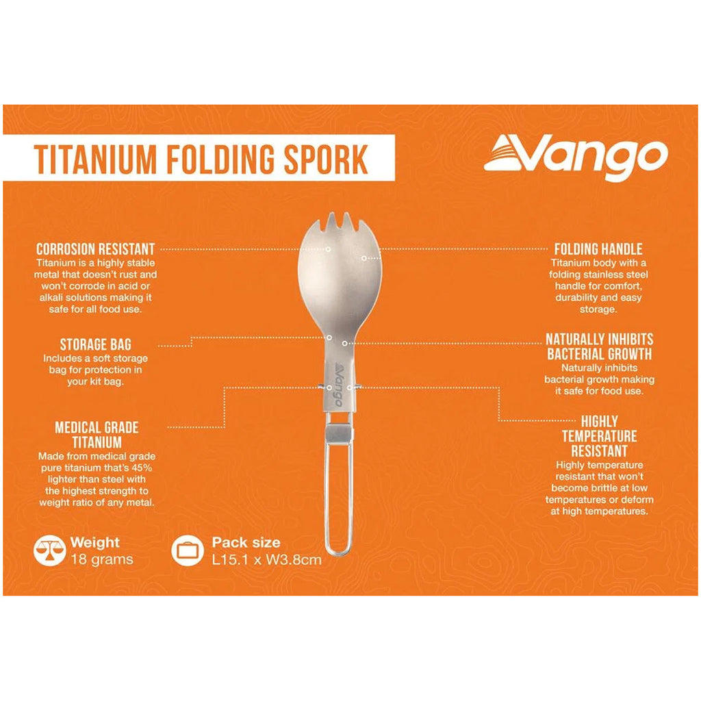 Cut weight, save space, and eat in comfort with the Vango Titanium Folding Spork – the ultimate lightweight utensil for adventurers.