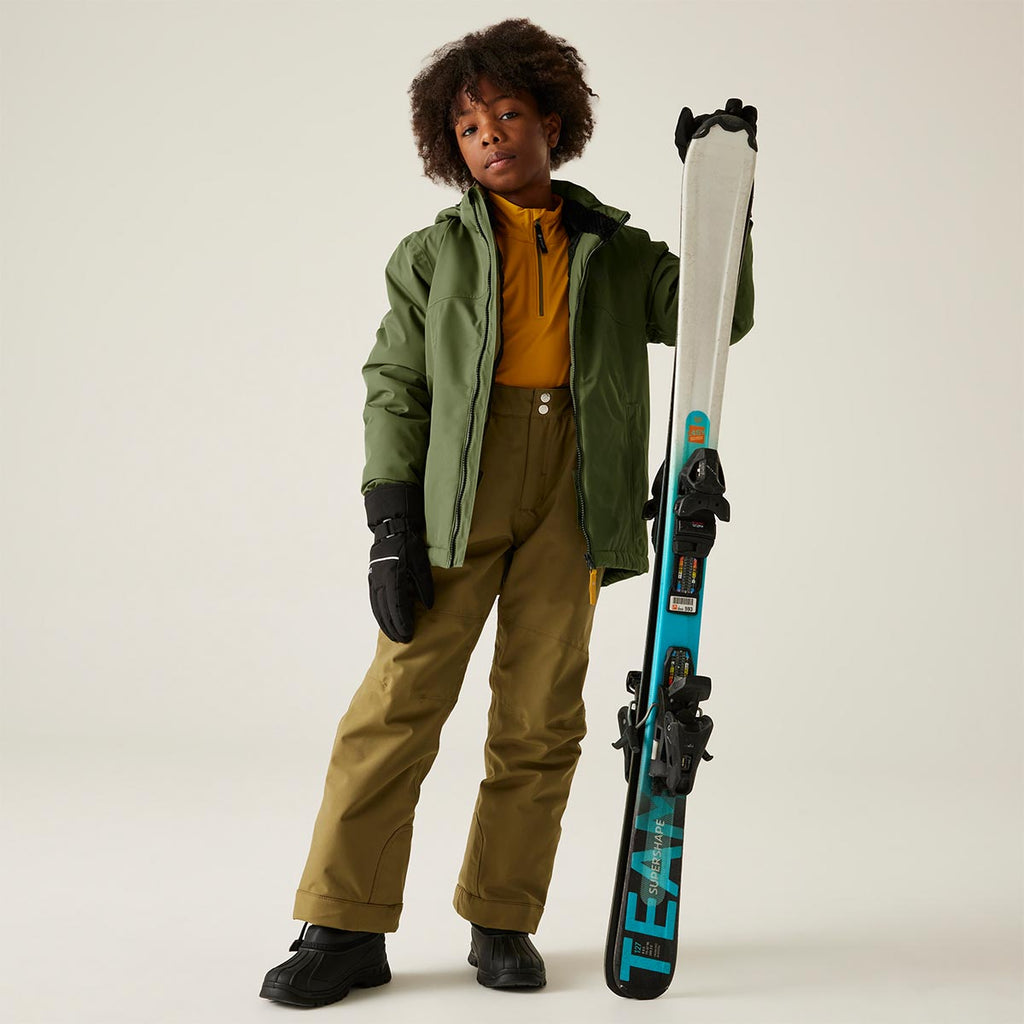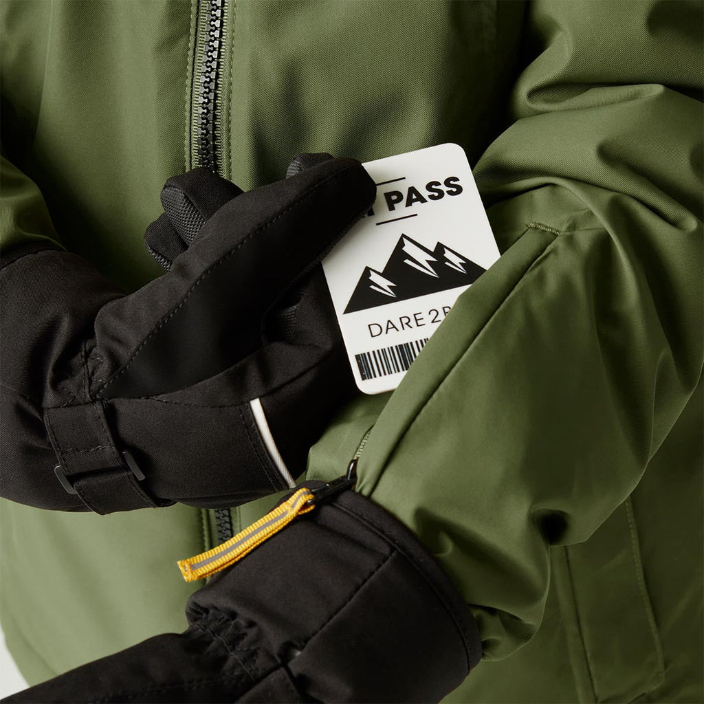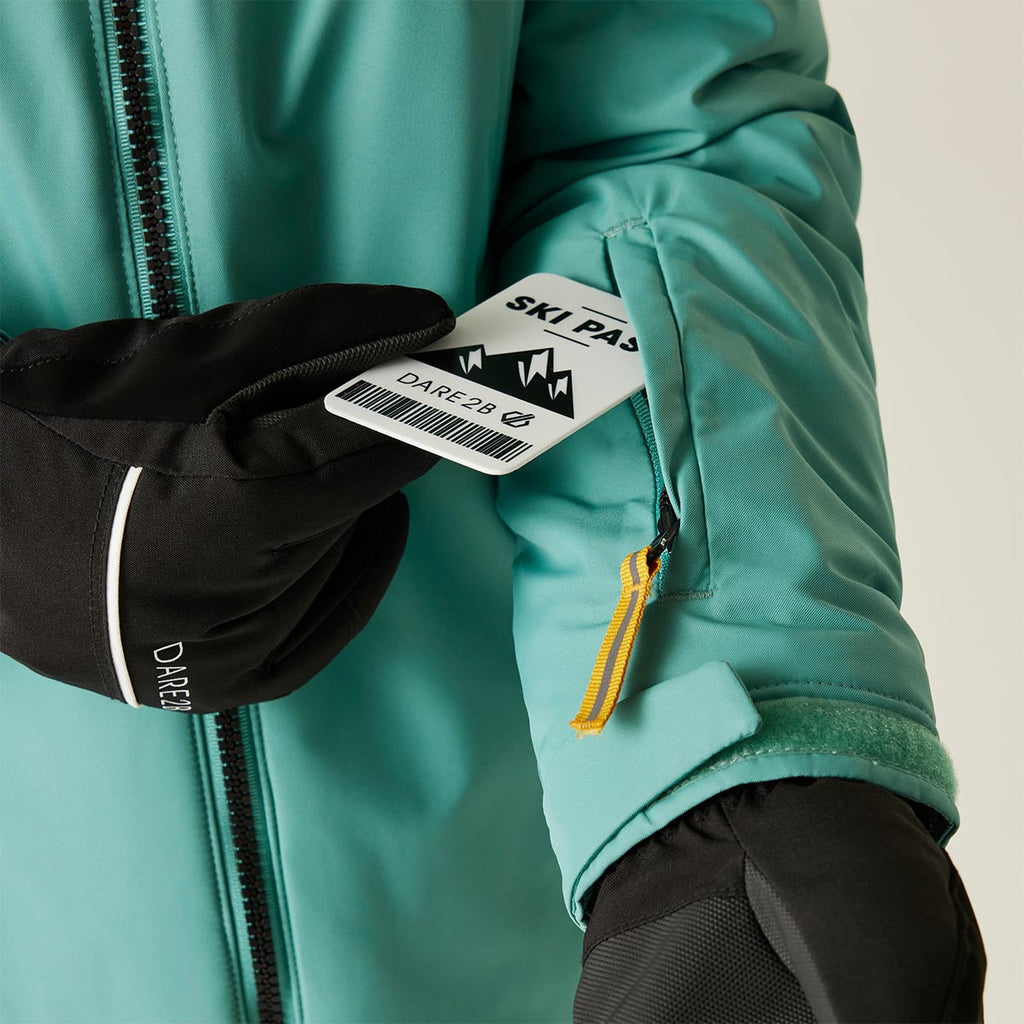 The Dare2b Kids' Impose V Ski Jacket is engineered for young explorers who need reliable protection in cold and wet conditions. Crafted with advanced Ared 15/15 waterproof and breathable fabric, this jacket ensures optimal performance on the slopes and beyond. High-loft insulation and a recycled polyester shell offer sustainable warmth, while ski-specific features like a snow skirt, ski pass pocket, and lens wipe make it a must-have for winter sports.