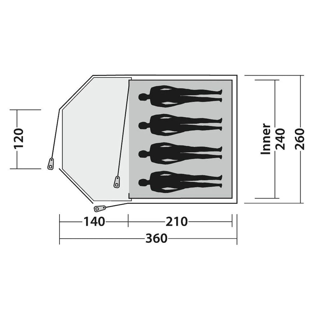 Sleeping four in a dome tent with large extended porch, the Blazar 400 is a versatile design, with fibreglass poles, ideal for couples, young families and friends. The porch with detachable groundsheet enjoys a large front door plus a side door flanked by windows and rainproof air vents matched by a large vent at the tent rear. The inner tent has a D-shaped door and a handy lantern hanging point.