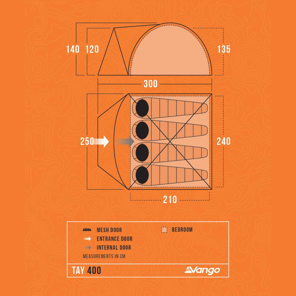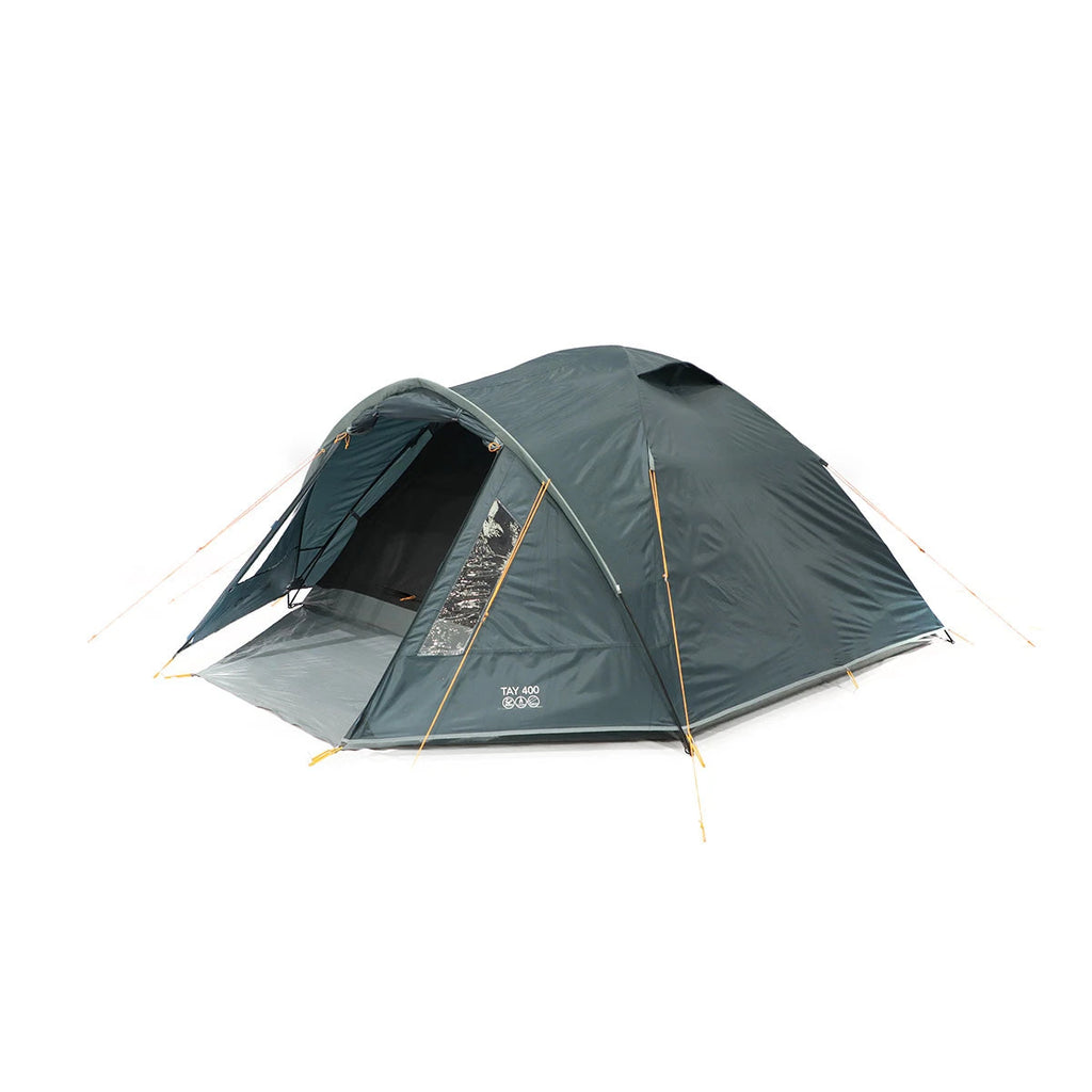 The Vango Tay 400 is a spacious 4-man dome tent with a small pack size, ideal for first-time campers and festival goers.