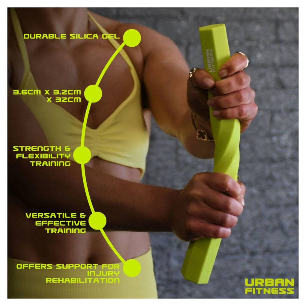 The Urban Fitness Twist Flex Resistance Bar is the ultimate tool for strength and flexibility training. Made from durable silica gel, this resistance bar measures 3.6cm x 3.2cm x 32cm, providing the perfect balance of resistance and flexibility. Ideal for home workouts, gym sessions, and injury rehabilitation, this versatile bar helps improve grip strength, forearm endurance, and overall muscle tone.
