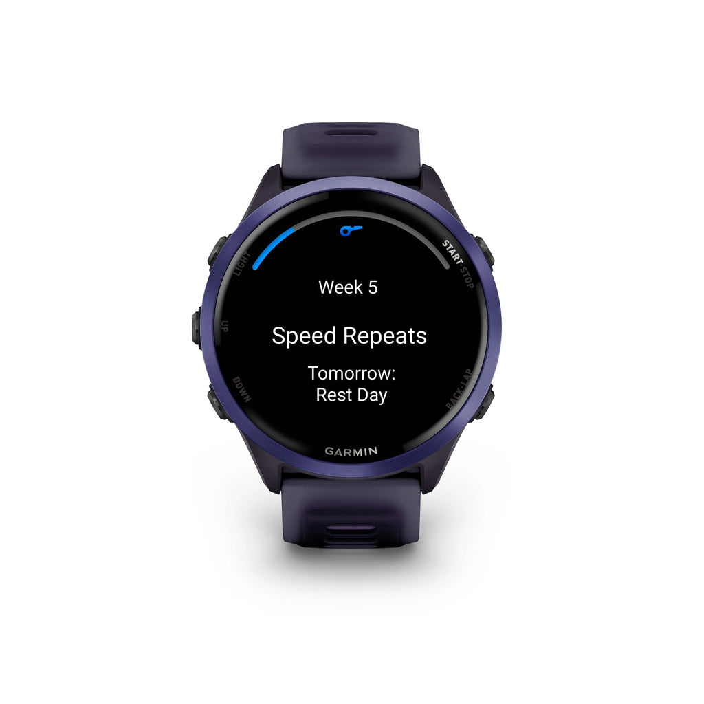 • Garmin Coach adaptive training plans and race predictors