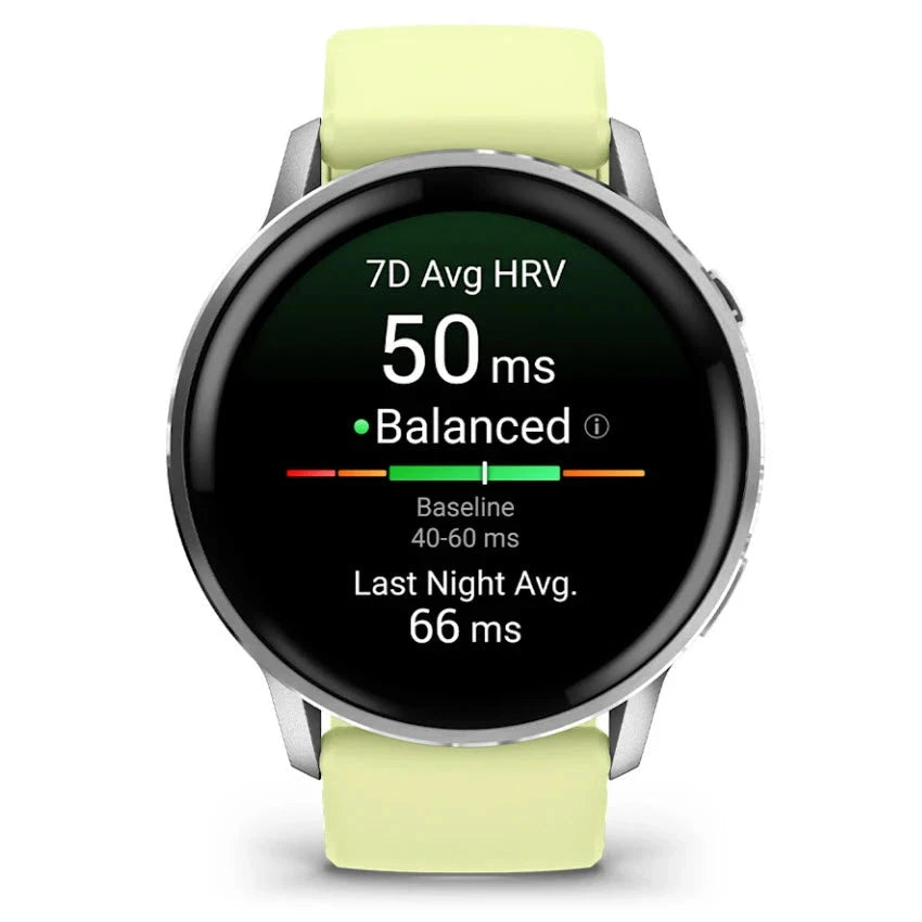- ECG app, HRV status, Body Battery™, Pulse Ox, and skin temperature tracking