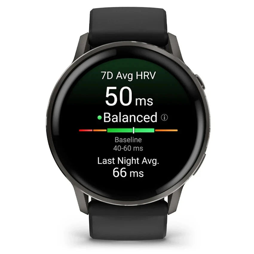 - ECG app, HRV status, Body Battery™, Pulse Ox, and skin temperature tracking