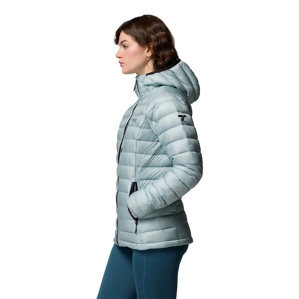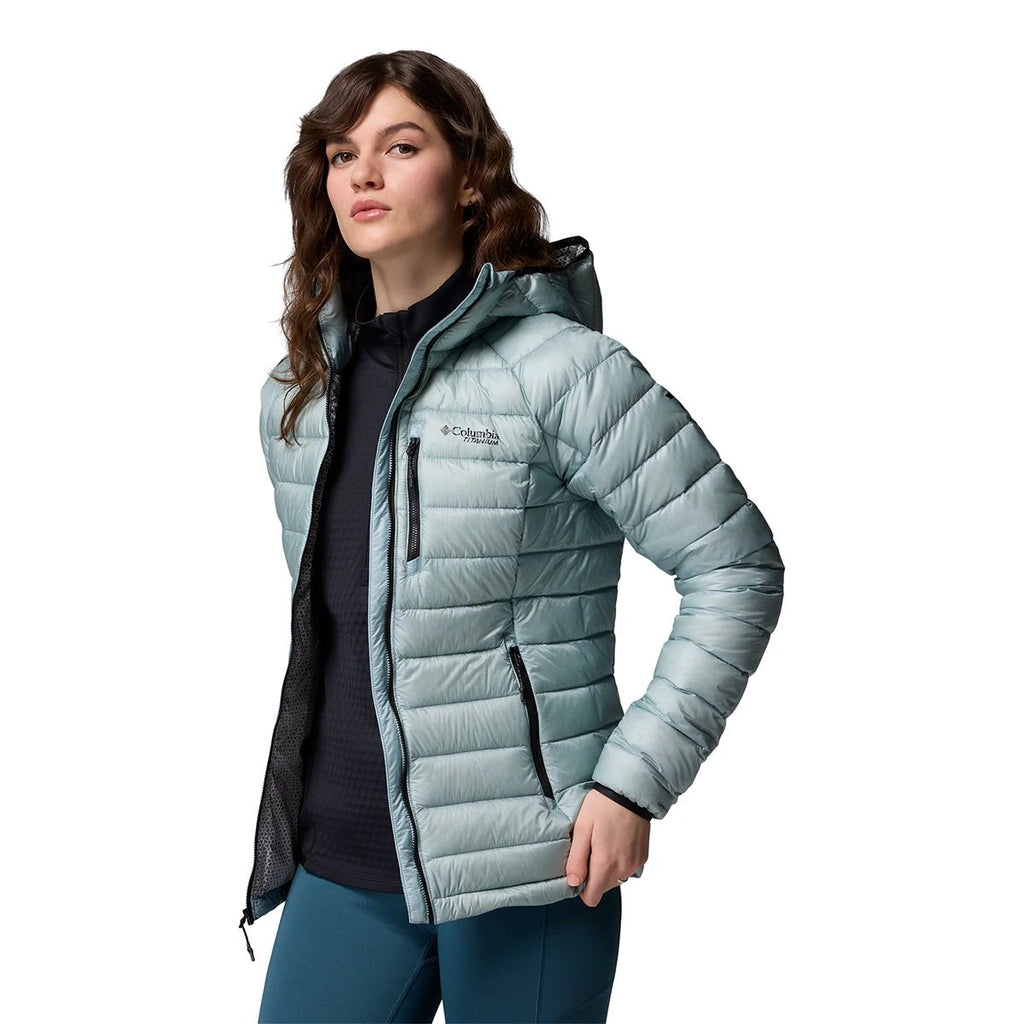 The Women's Arctic Crest™ Down Hooded Jacket is a high-performance outerwear piece designed for those who demand warmth without the weight. Crafted with Columbia’s most advanced technologies, this jacket delivers exceptional insulation, weather protection, and packability—making it an essential for cold-weather explorers.