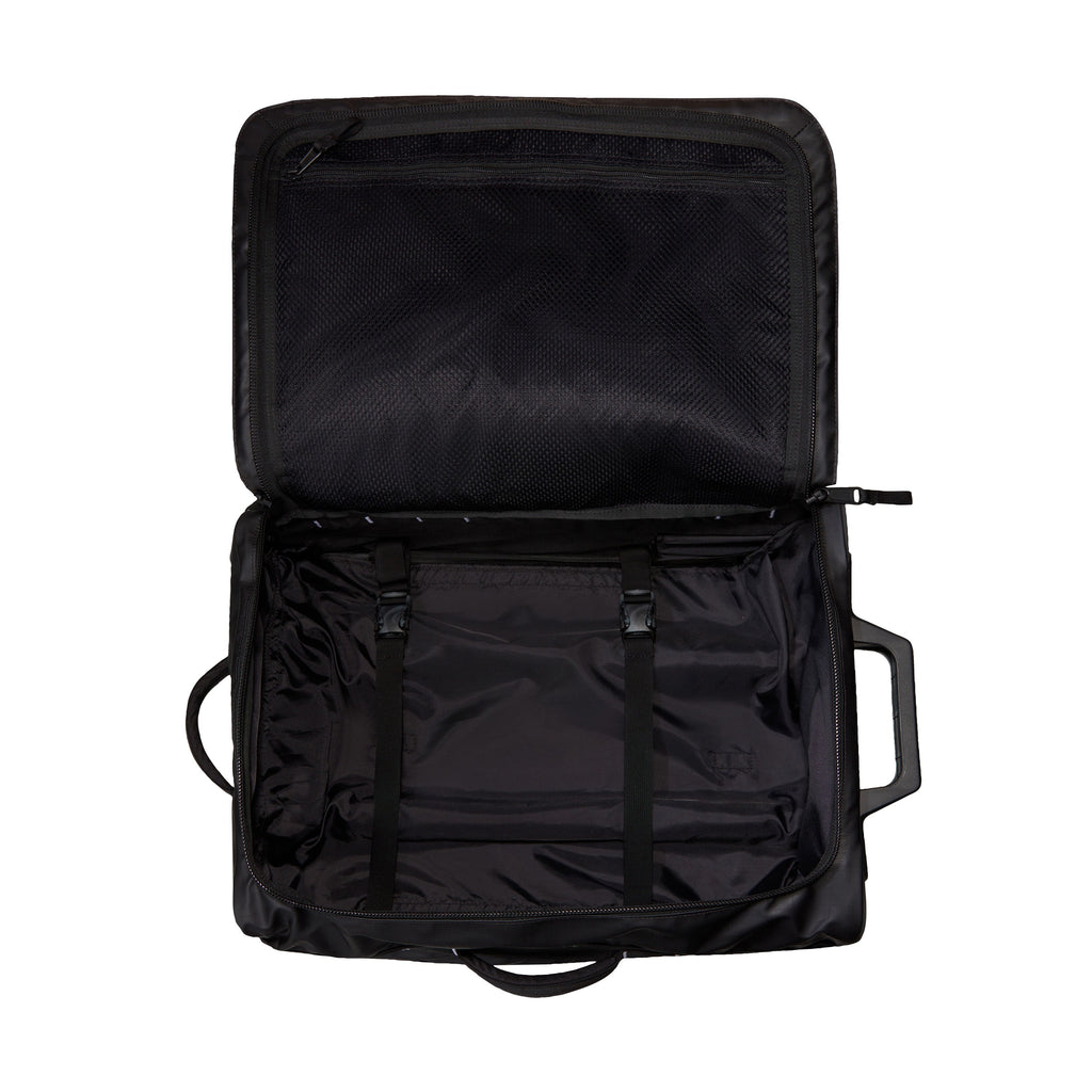 Inspired by the popular Base Camp Voyager Duffel, the Base Camp Voyager Roller 21" combines durability with practicality. Crafted from lightweight recycled polyester tarpaulin, this roller bag is built to withstand the rigors of travel. It features smooth-rolling wheels, a wide telescoping handle, and a robust chassis for reliable performance. The spacious interior, complete with a 15" laptop sleeve and internal compression straps, ensures belongings are secure and organized on the go.