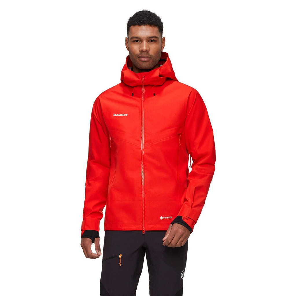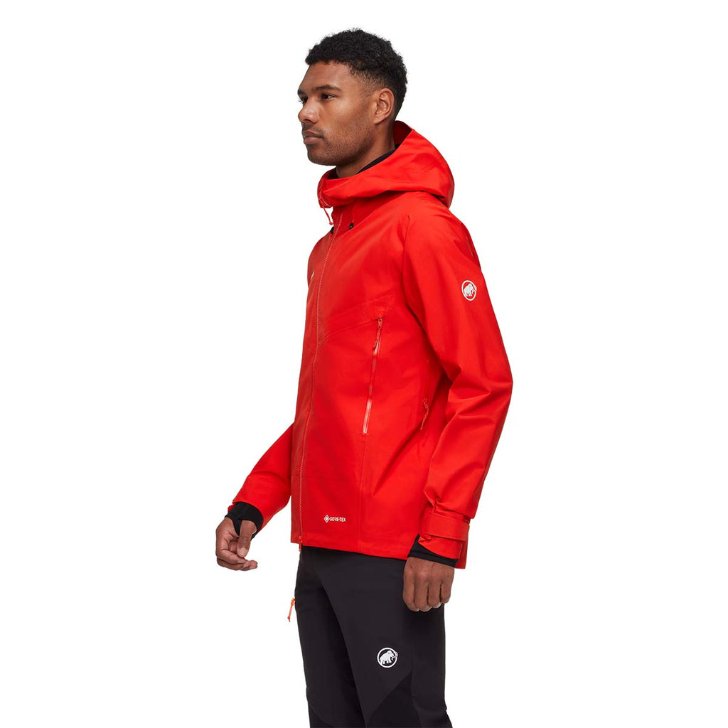 The Mammut Crater IV HS Hooded Jacket Men is a sustainable 3-layer GORE-TEX hardshell built for year-round mountain adventures. It offers top-tier waterproofing, breathability, and durability with eco-conscious materials.