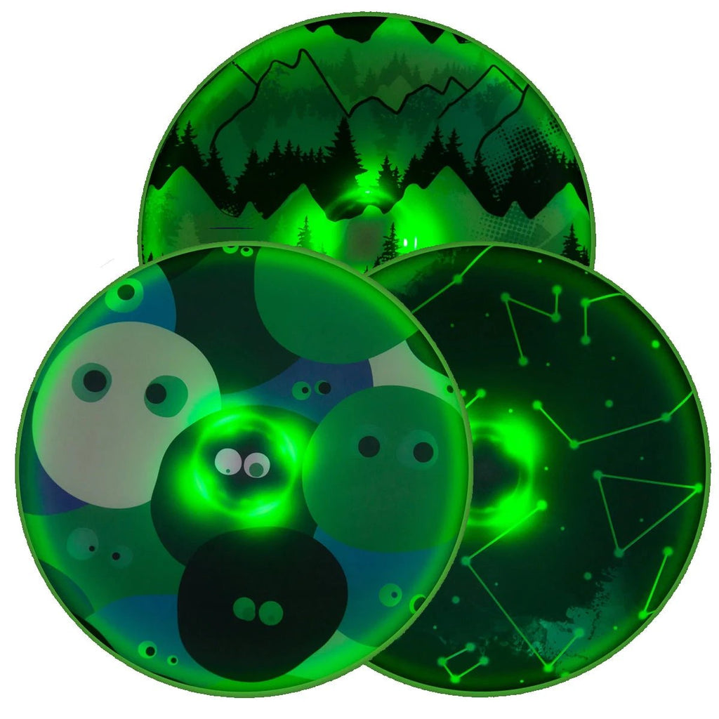 •Bright Green LED Light: Enhances visibility for nighttime play and adds a cool glow effect.