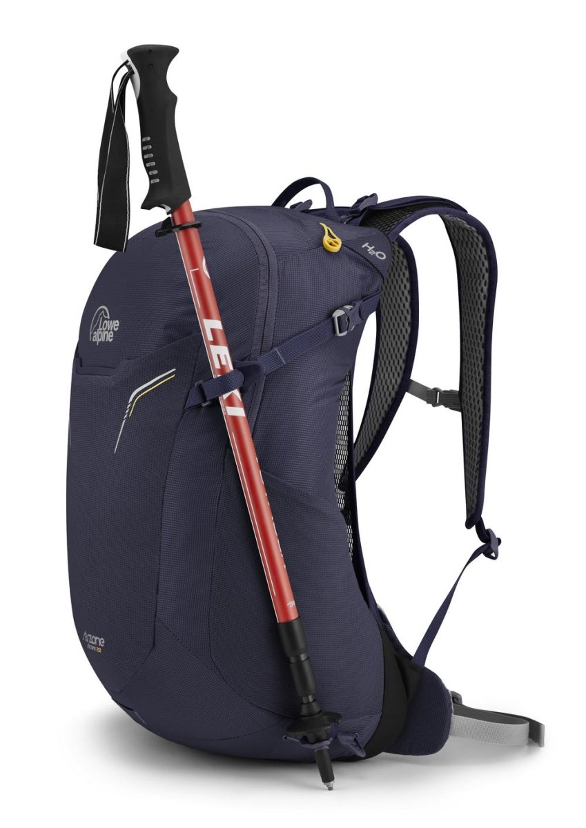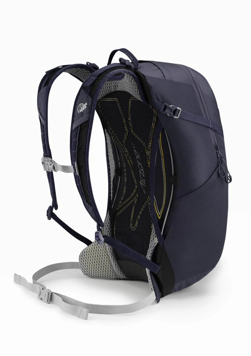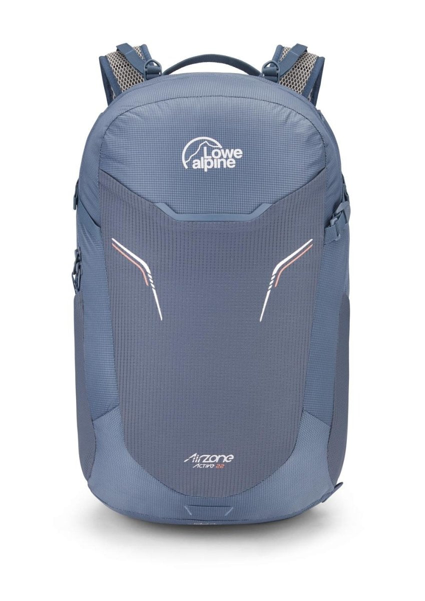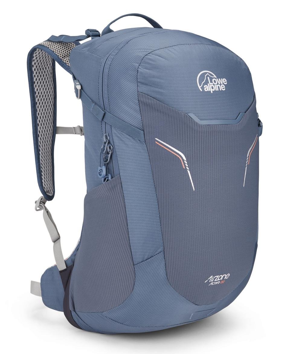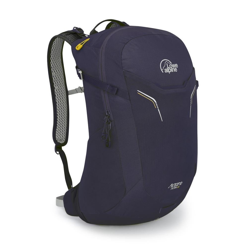 The Lowe Alpine AirZone Active 22L Day Pack offers cool, dry comfort for fast-paced hikes with its breathable AirZone LT™ back system. Built from durable ripstop nylon with a HydroShield coating, it features hydration compatibility, secure pole attachments, and an integrated rain cover for versatile performance on the trail.
