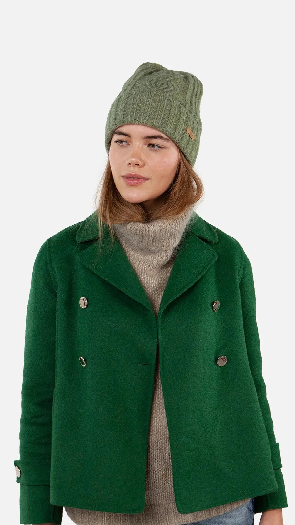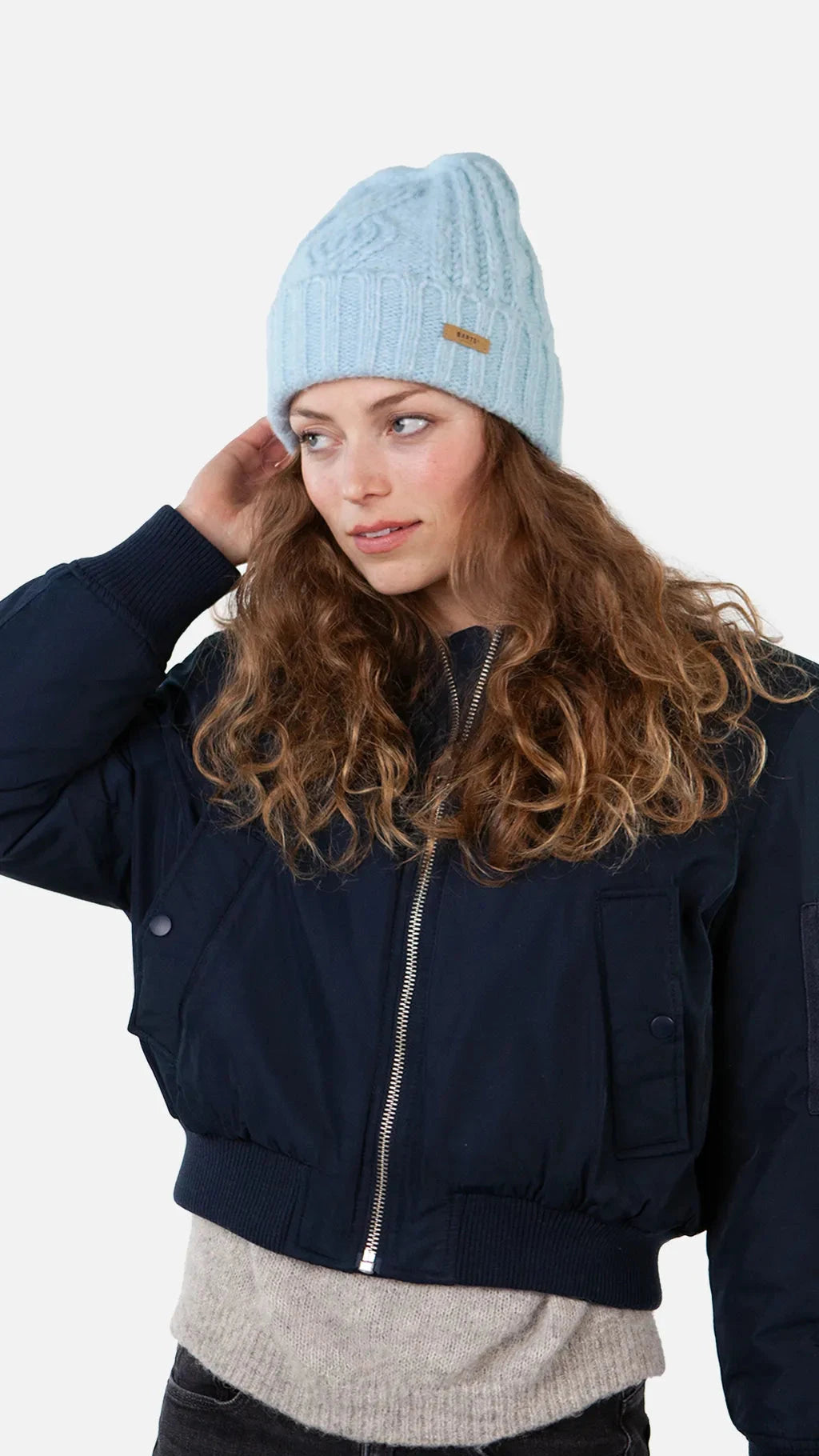 The BARTS Farrah Beanie is a thoughtfully designed winter hat that blends sustainability, comfort, and timeless style. Featuring a classic cable knit pattern and a soft turn-up brim, this beanie offers a higher fit for a modern silhouette. Lined with a fleece headband, it ensures warmth and softness around the ears without compromising breathability.