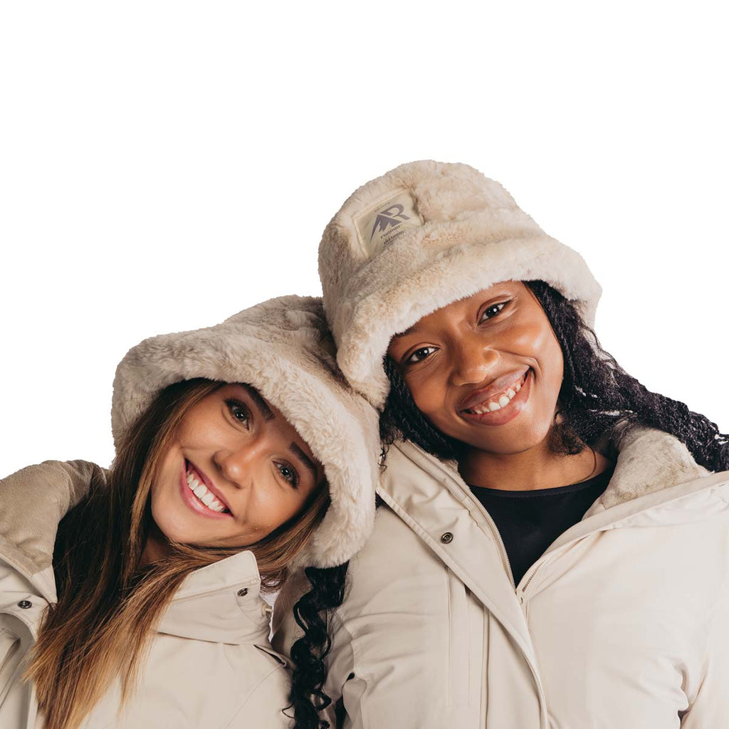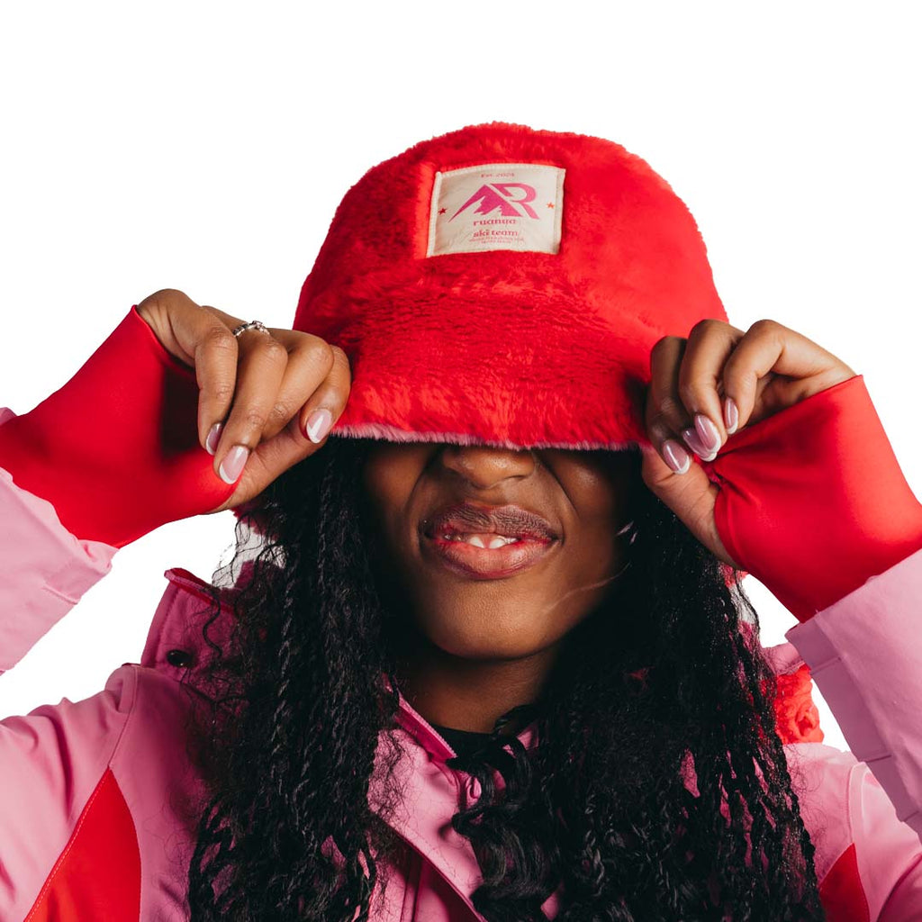 Two looks, one hat—RuaNua’s reversible faux fur bucket hat brings warmth and glamour to every winter outfit.