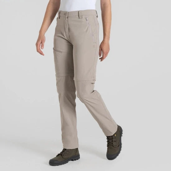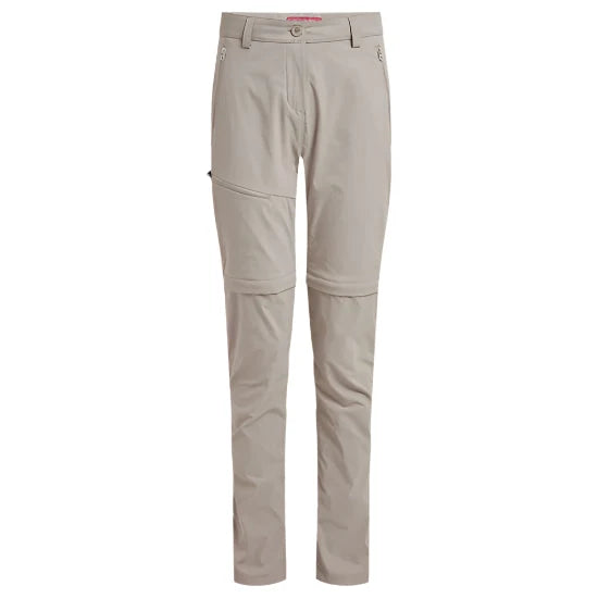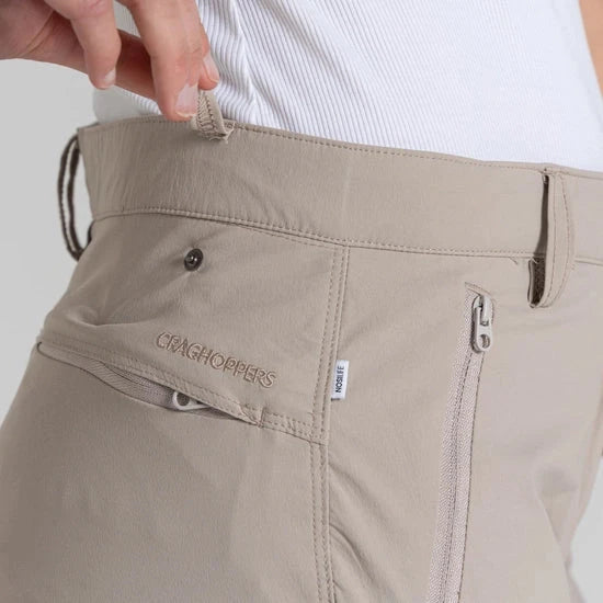 The Craghoppers Women's NosiLife Pro Convertible Trouser III is the ultimate versatile outdoor companion. These trousers combine full-stretch fabric with NosiLife insect-repellent and odour-elimination technology, making them perfect for active trails and hot-weather adventures. Easily convert them into shorts with a simple zip, offering adaptability to changing conditions and supreme comfort throughout your journey.
