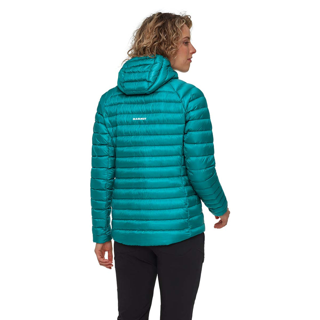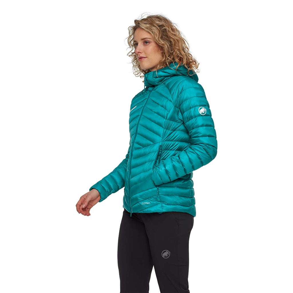 The Mammut Broad Peak IN Hooded Jacket Women is a lightweight, high-performance down jacket for alpine adventures. With 800 cuin hydrophobic down and a recycled Pertex® Quantum shell, it offers warmth, packability, and sustainability.