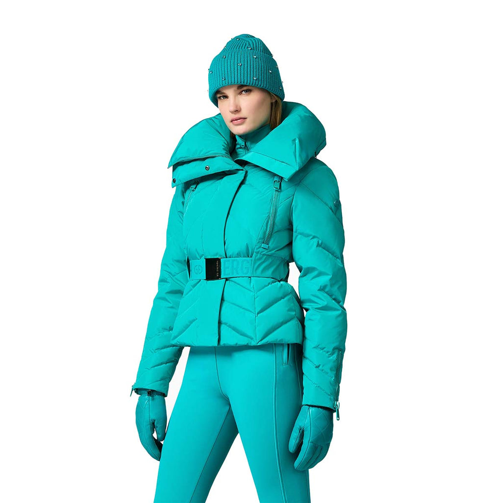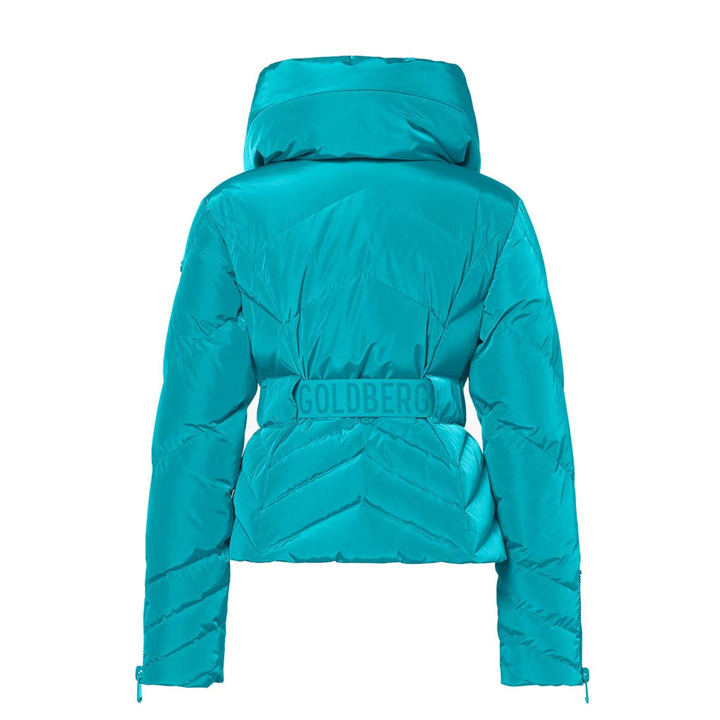 The Goldbergh JIVE Ski Jacket is a belted down jacket with elegant quilting, combining high-performance warmth, sustainable materials, and a flattering silhouette.