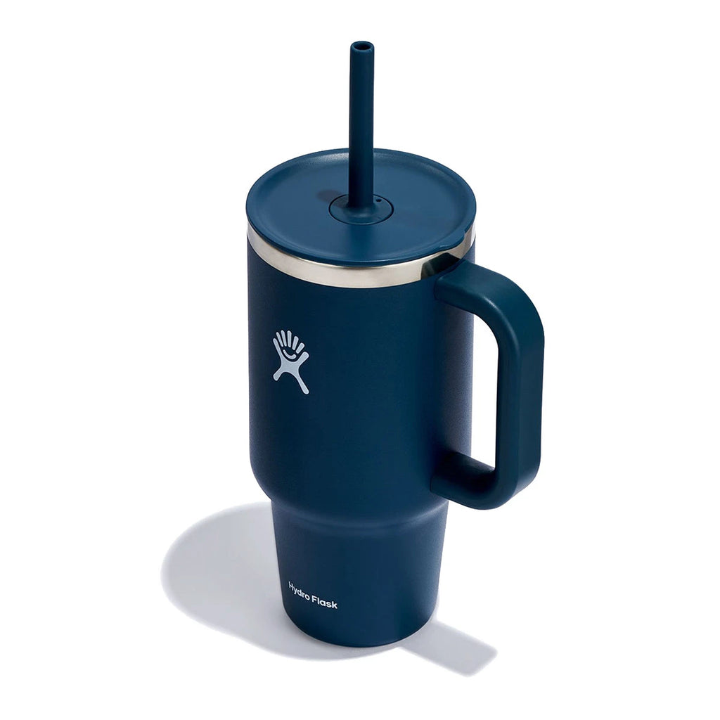 Stay hydrated on the go with the 32 oz All Around™ Travel Tumbler by Hydro Flask, available from Great Outdoors. Engineered for convenience and durability, this tumbler features a snug, secure, splash-resistant Press-In Straw Lid and a flexible straw for effortless sipping. Its strong ergonomic handle ensures comfort, and it fits most cupholders, making it perfect for travel. The TempShield® double-wall insulation keeps your drinks cold, while the Color Last™ powder coat adds a splash of color and prevents sweating. Crafted from 18/8 pro-grade stainless steel, it ensures durability, pure taste, and no flavor transfer.