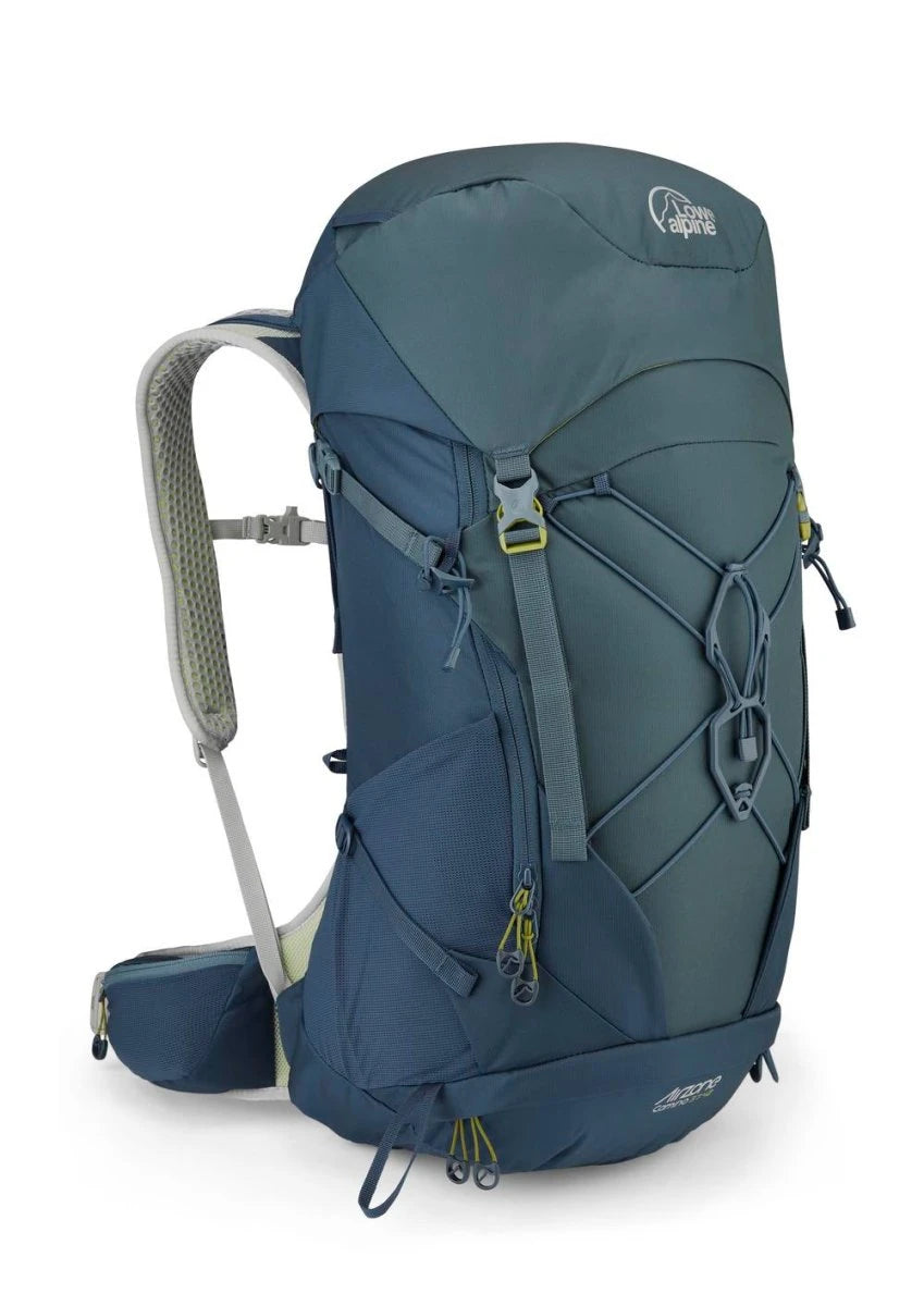 Introducing the Lowe Alpine AirZone Trail Camino 37:42L Hiking Bag. Tailored for the intrepid explorer, this backpack is a blend of functionality and comfort. Its AirZone™ suspended mesh system ensures breathability, while the 37L main compartment, expandable to 42L, accommodates all your hiking necessities. The pack's structure includes twin compartments with dual entry, a versatile SpiderPlate bungee system, and dedicated pockets for snacks and valuables. Its robust construction, highlighted by a fluorocarbon-free DWR coating, stands up to the rigors of nature. The backpack's refined harness system evenly distributes weight, allowing you to tackle the most rugged trails with ease.