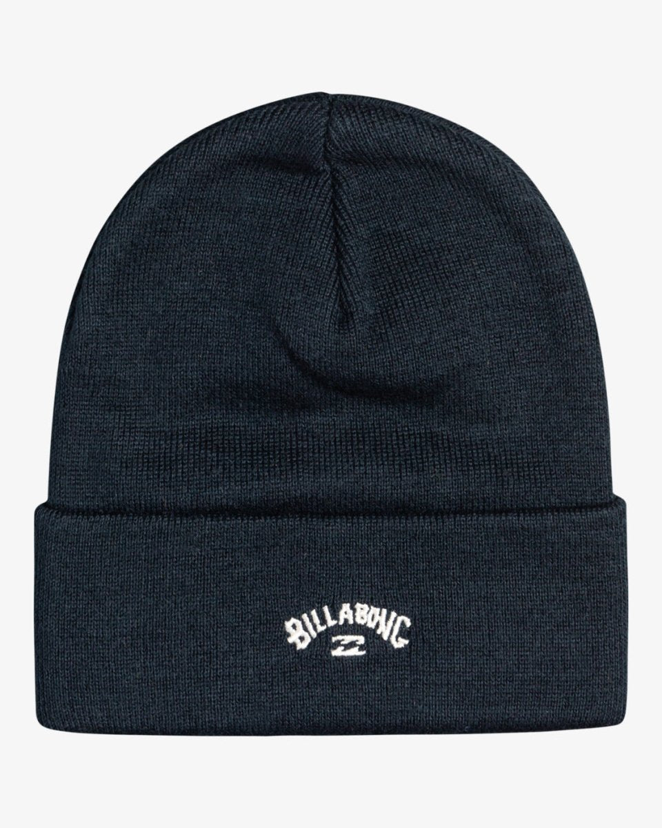Billabong's Arch Beanie in Navy combines functionality and fashion, featuring a classic fit and durable acrylic rib knit fabric with an embroidered logo.