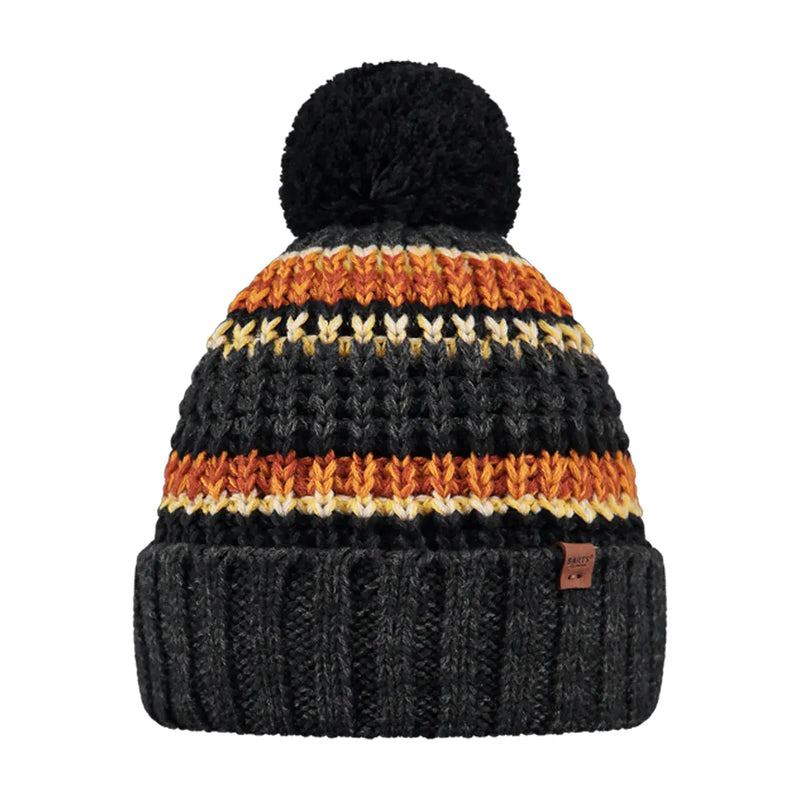 The Barts Goser Beanie is an environmentally-friendly winter hat that will keep you cozy and stylish. Created with a mix of 50% recycled polyester and 50% acrylic, this beanie has a unique knit and stripe design for a retro vibe. Its fleece headband lining provides extra warmth and comfort, making it ideal for outdoor activities in cold weather. The beanie's small, higher fit and adorable pom-pom detail offer both snugness and a playful touch to your ensemble.