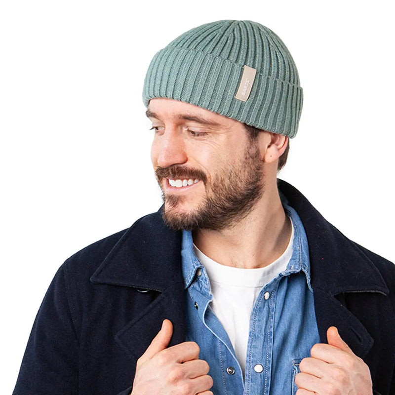 Keep cozy and fashionable with the BARTS Sumter Beanie in Light Pistache. Made from 62% recycled polyester, this beanie has a fisherman fit and a 7 cm turn-up height, giving it a trendy yet timeless appeal. Choose from various colors and join the movement for sustainability and style. Perfect for anyone looking to stay warm and make a statement this winter season.