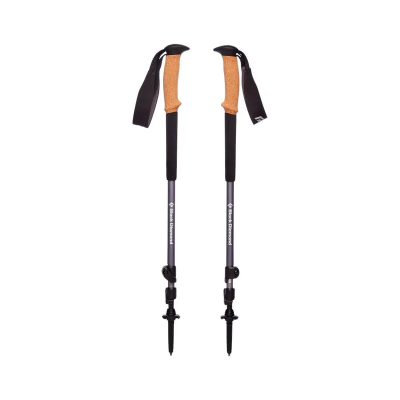 The Black Diamond Trail Cork Trekking Poles are built for adventurers seeking 4-season versatility with a balance of comfort and reliability. Featuring a premium natural cork grip for moisture management and comfort, these poles are equipped with dual FlickLock® adjustability for quick length adjustments. With interchangeable carbide tech tips and both trekking and snow baskets included, the Trail Cork poles are designed to handle any terrain or season with ease.
