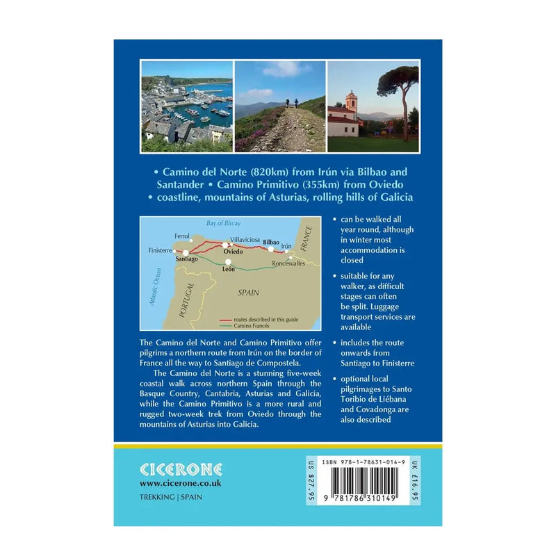 Guidebook to walking the Camino del Norte and Camino Primitivo pilgrim routes to Santiago de Compostela in northwest Spain. The 820km Camino del Norte from Irún via Bilbao and Santander takes around 5 weeks to complete. The 355km Camino Primitivo takes about 2 weeks. Includes the Camino Finisterre from Santiago to the coast.