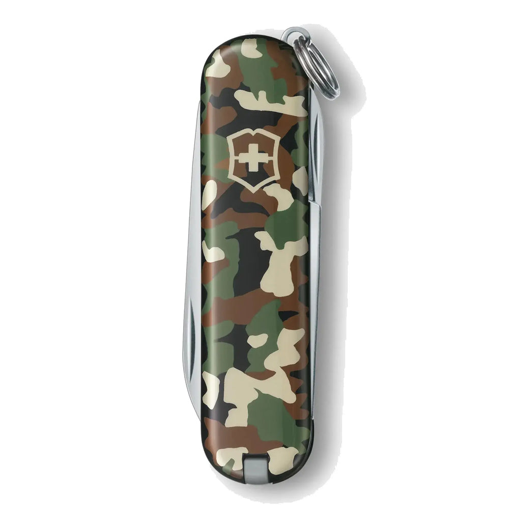 Carry the Victorinox Classic SD - Camouflage, a versatile and compact pocket knife with 7 essential tools.
