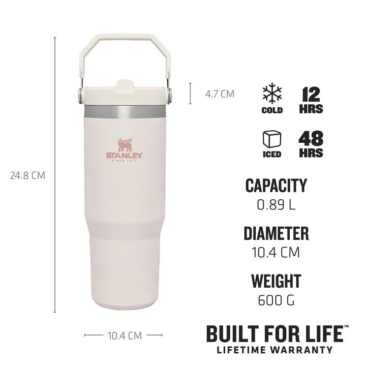 Introducing the Stanley Classic IceFlow Flip Straw Tumbler in Rose Quartz—your essential companion for daily hydration. Ideal for commutes and workouts, this 0.89L tumbler features a built-in flip straw that ensures easy and effortless sipping. Its double-wall vacuum insulation retains the temperature, offering 12 hours of cold and 48 hours of iced sustenance. The folding handle and compatibility with car and bike cup holders make it a versatile choice. Plus, cleaning is a breeze with dishwasher-safe components.