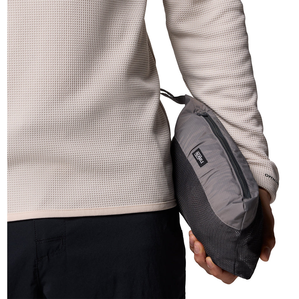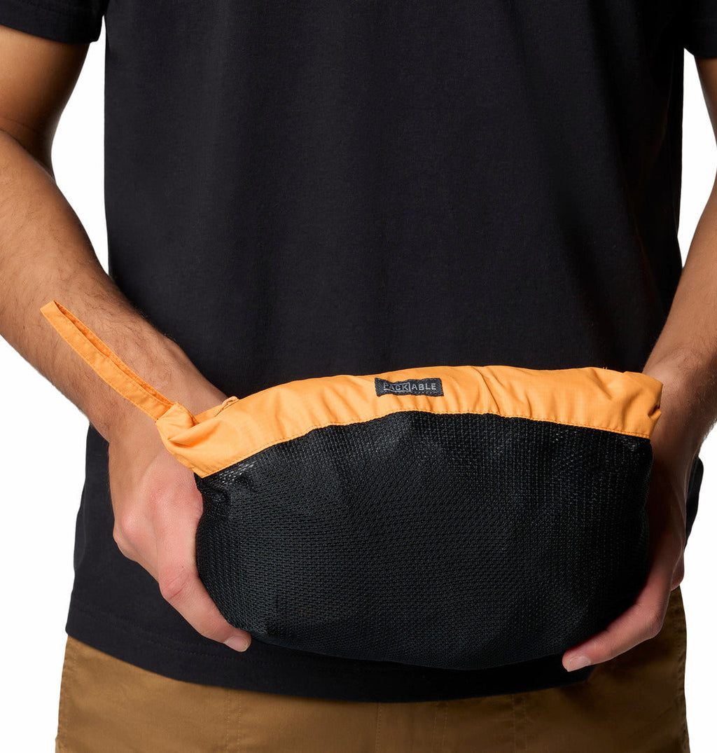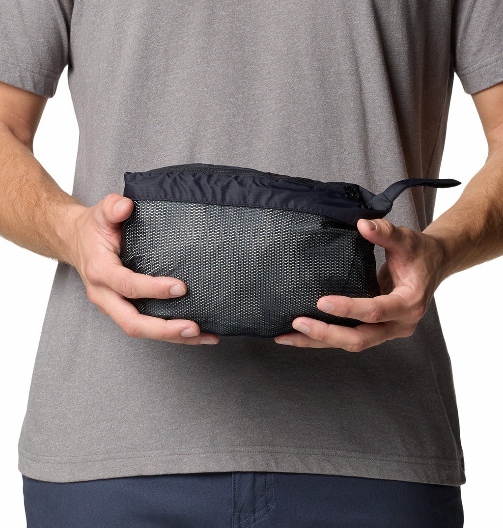 Folds into its own hand pocket for easy storage in your backpack or travel bag. -