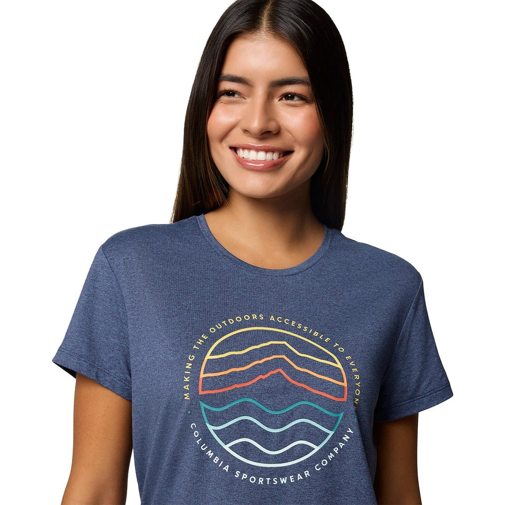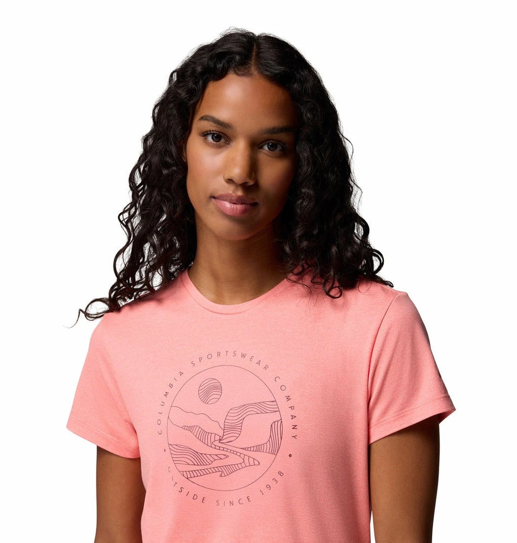 The Columbia Women’s Sloan Ridge™ Technical Graphic T-Shirt is built for active days under the sun. With its breathable stretch fabric, moisture-wicking tech, and bold outdoor-inspired graphics, this tee keeps you cool, dry, and stylish from trailhead to town.