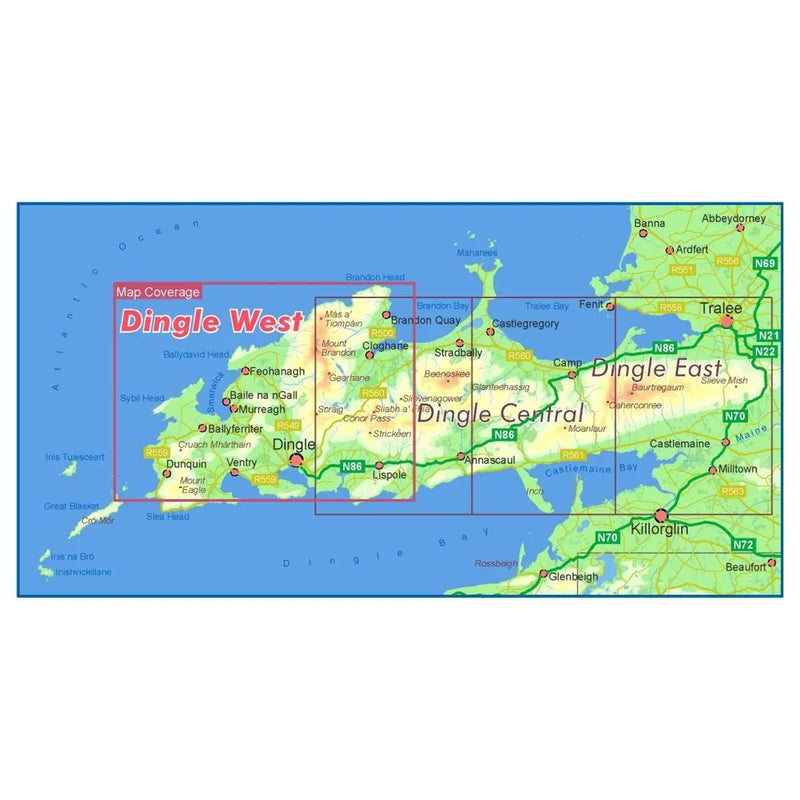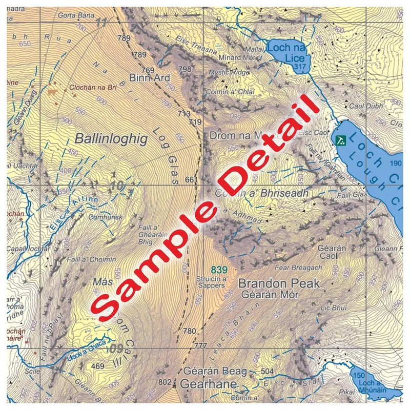 Definitive detailed map at 1:25,000 scale covering the western end of the Dingle peninsula – from Dunquin to the Conor Pass and including Mount Brandon.