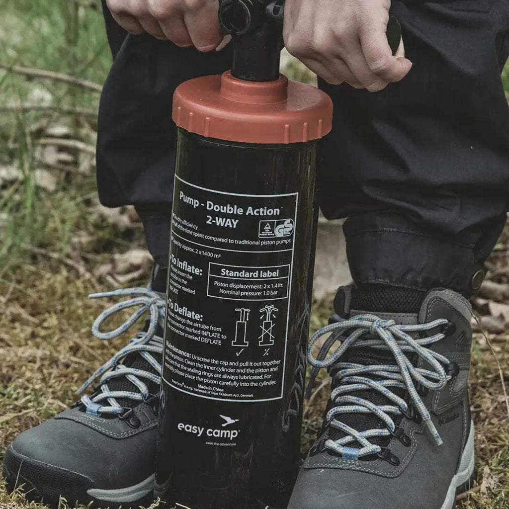 The Easy Camp Double Action Pump inflates and deflates with ease, doubling efficiency over standard pumps.