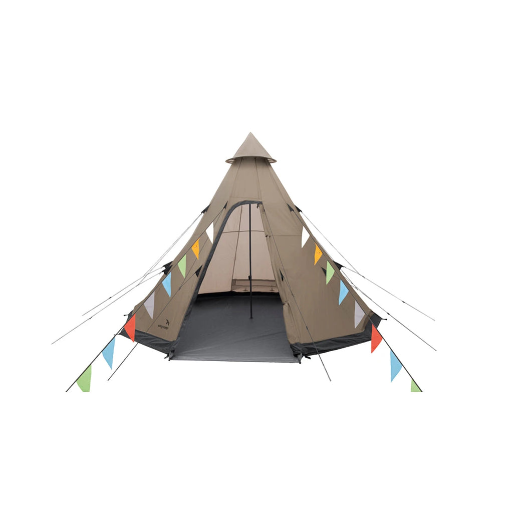 The Easy Camp Moonlight Tipi is a stunning blend of traditional design and modern functionality, perfect for campers who appreciate both style and performance. Its iconic tipi shape not only makes a visual statement but also provides excellent headroom and a spacious interior, comfortably accommodating up to six people. Constructed from durable polyester with a waterproof PU coating, the Moonlight Tipi is designed to withstand various weather conditions, ensuring a dry and comfortable shelter. The single central pole makes setup straightforward and quick, while the multiple ventilation points and mesh panels ensure optimal airflow, reducing condensation and keeping the interior fresh. The sewn-in groundsheet adds an extra layer of protection against the elements and insects. Lightweight and easy to transport, the Moonlight Tipi is ideal for festivals, family camping trips, or a stylish weekend getaway. With its blend of durability, functionality, and iconic design, the Easy Camp Moonlight Tipi is a standout choice for outdoor enthusiasts.