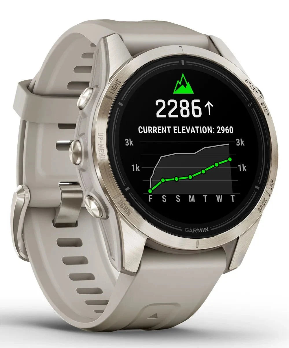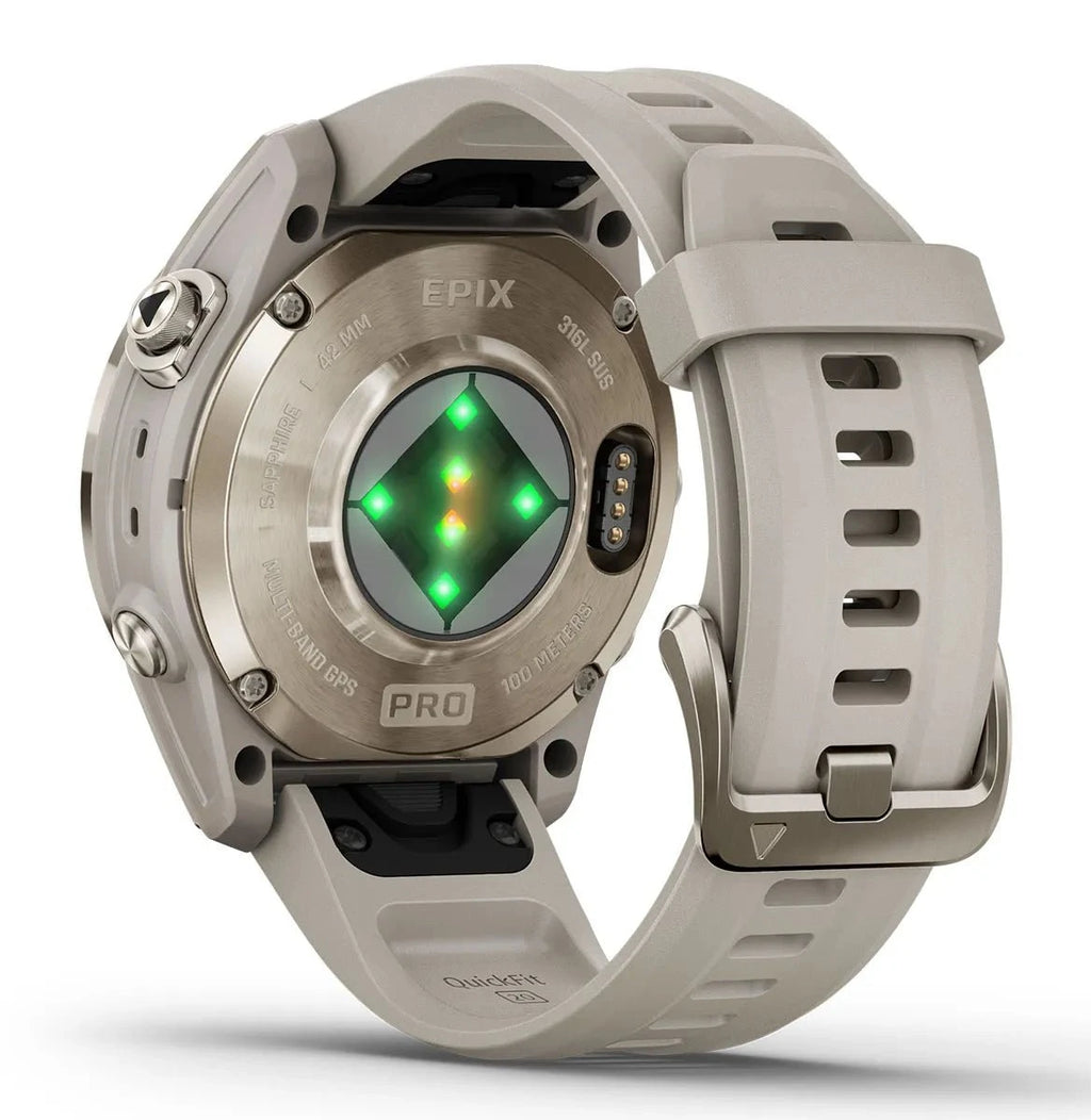The epix™ Pro (Gen 2) – Sapphire Edition, a fusion of elegance and rugged functionality. Designed for the active and fashion-conscious individual, this 42mm soft gold watch is a statement piece that doesn't compromise on performance. Boasting an eye-catching AMOLED display and a scratch-resistant sapphire lens, it’s optimized for smaller wrists without sacrificing visibility or durability. Experience up to 10 days of battery life in smartwatch mode, ensuring you stay connected and on top of your game, all day and every day.