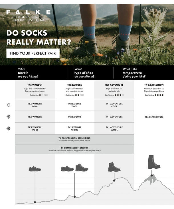 Elevate your hiking experience with the Falke TK2 Explore Cool Trekking Socks. Tailored for easy terrain, they boast a lyocell blend for cooling, a special 3-layer fabric for moisture control, and an anatomical fit, ensuring your feet stay fresh and comfortable.