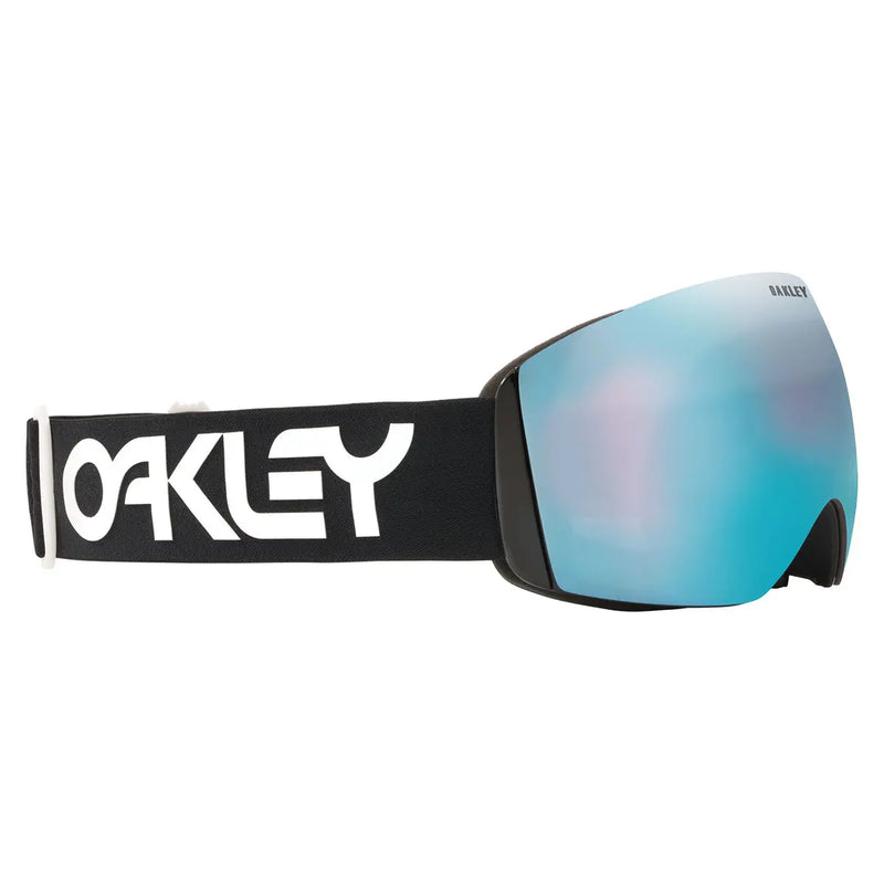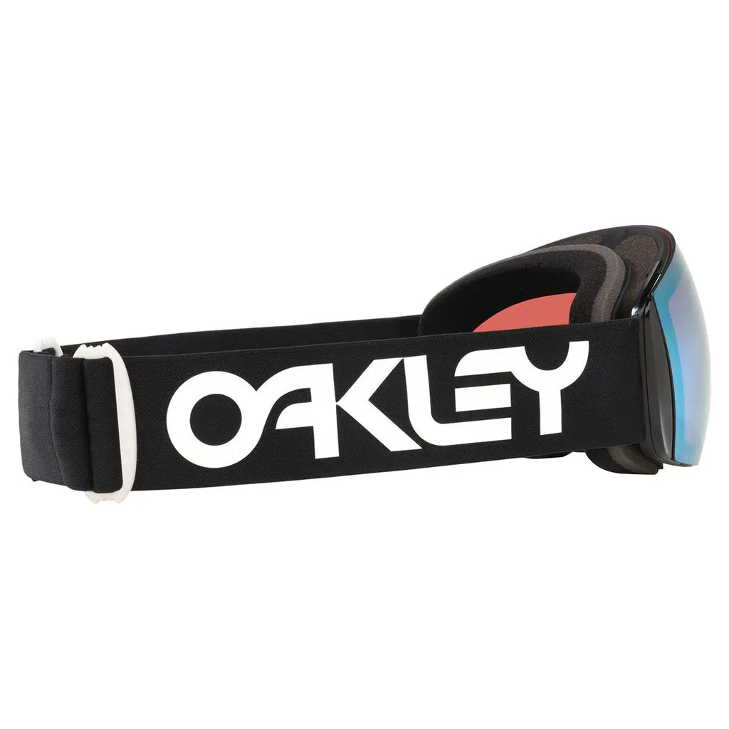 The Oakley Flight Deck™ L Snow Goggles in Black with Prizm Sapphire lenses offer superior clarity and wide peripheral vision in bright conditions. Inspired by fighter pilot helmet visors, these goggles feature a rimless design that maximizes visibility and Oakley’s Ridgelock Technology for quick and secure lens changes. The Prizm Sapphire lenses enhance color and contrast, providing crystal-clear vision when carving down the slopes.