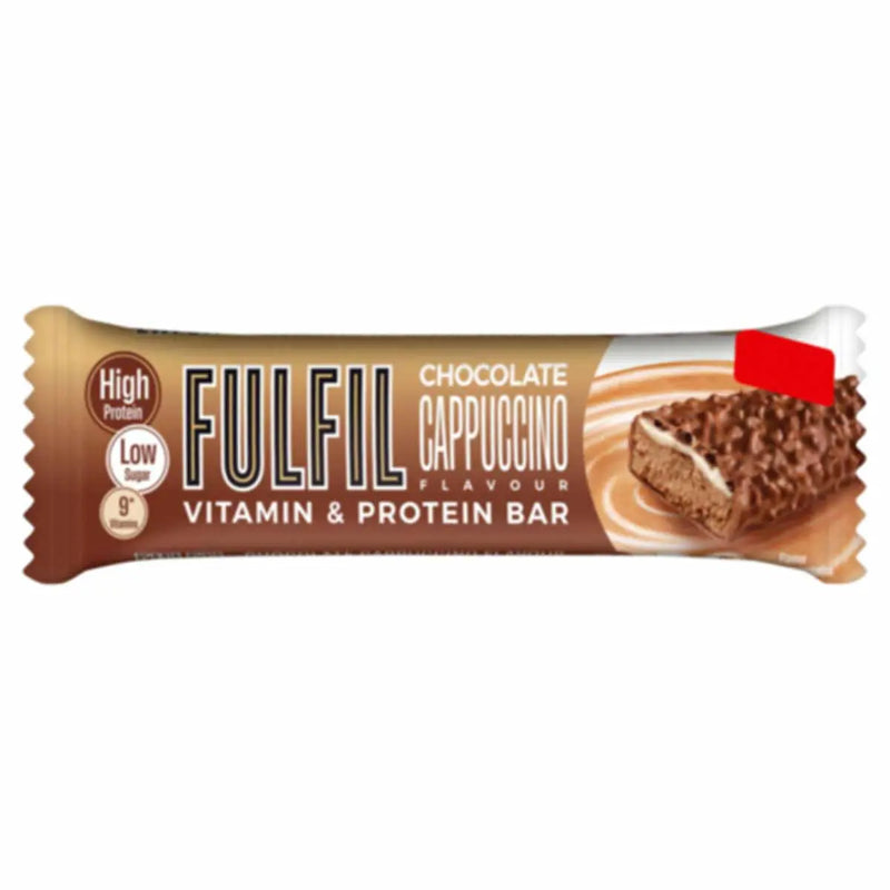 Introducing the Fulfil Nutrition Protein Bar Chocolate Cappuccino! Milk chocolate sprinkled with cocoa nibs encases a layer of cream-topped cappuccino flavored dough center with only 1.2g of sugar, 20g of protein, and 9 multivitamins. Satisfy your hunger with only 206 kcal per serving.