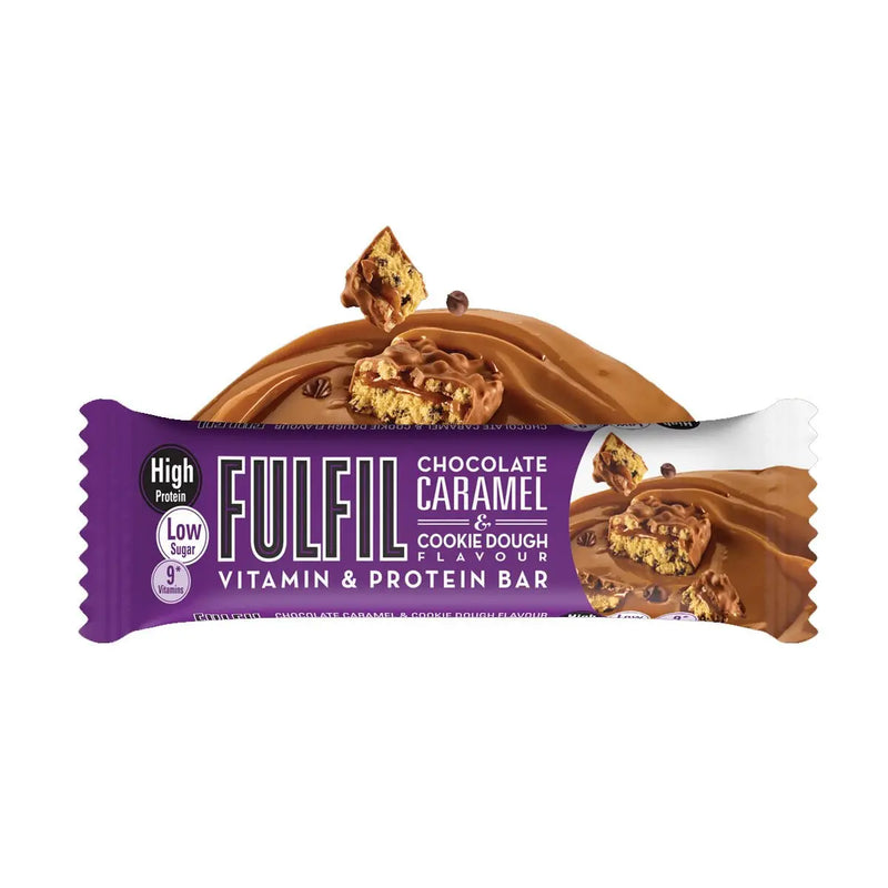 A cookie dough base topped with a layer of crunchy crispies, caramel and all coated in delicious milk chocolate. This bar packs a punch with 20g of protein and 100% RDA of 9 vitamins.