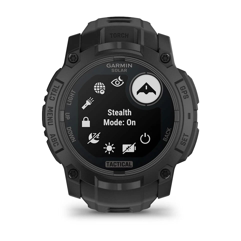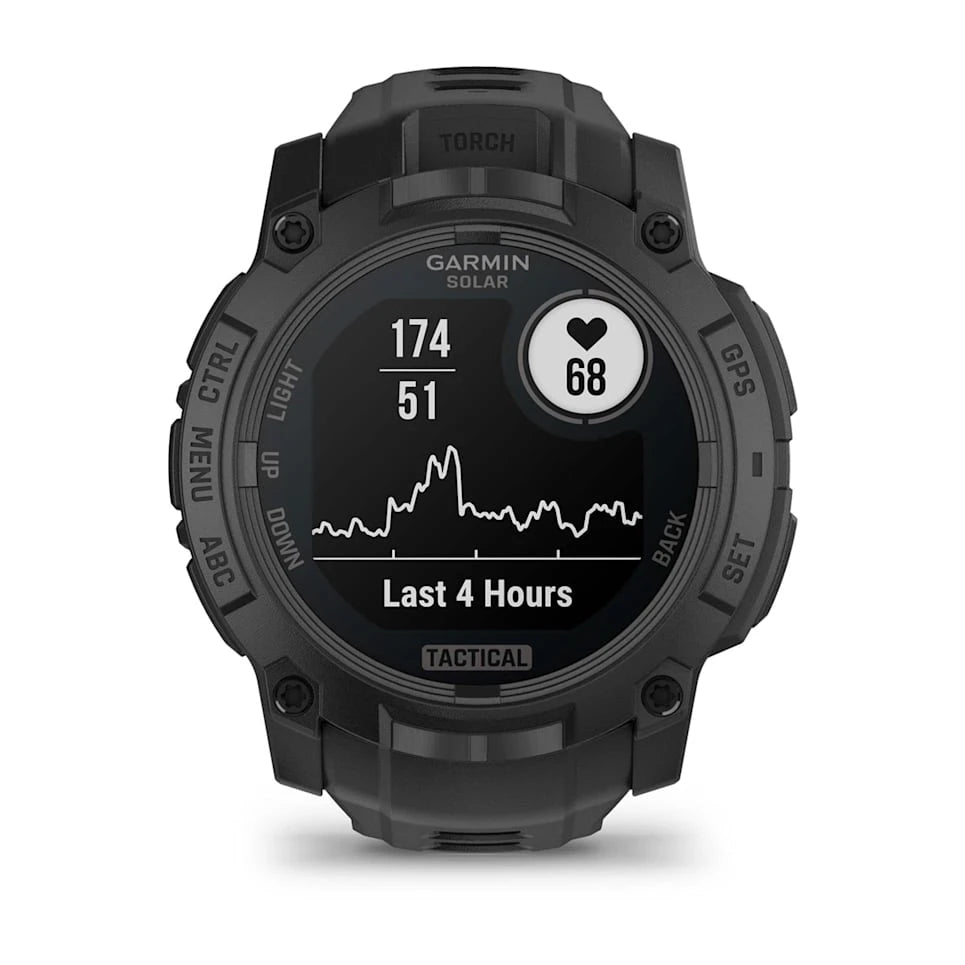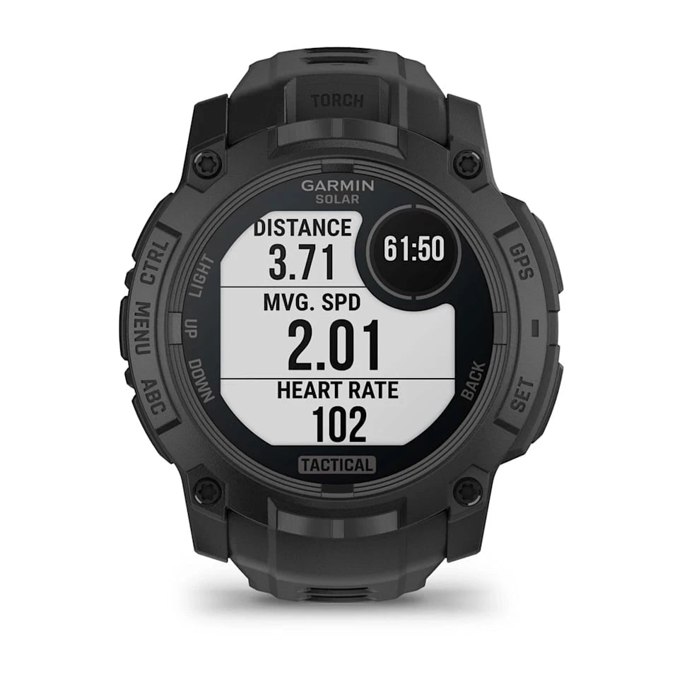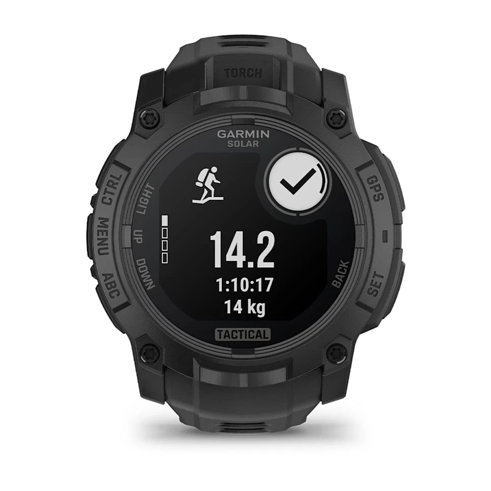 The Garmin Instinct® 3 Tactical Solar is a rugged 50 mm GPS smartwatch with solar charging for unlimited endurance.