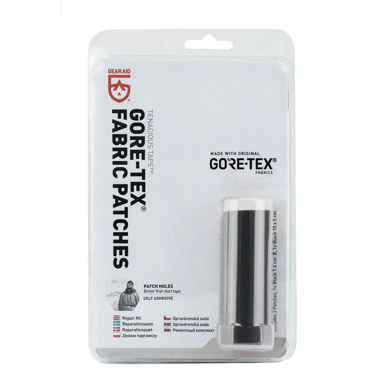 When GORE-TEX jackets get a tear, don't despair. Fix it with Tenacious Tape GORE-TEX Fabric Patches. This GORE-TEX patch kit contains two adhesive-backed fabric repair tapes. The pressure-sensitive patches can be cut to the size and shape you need for any hole, rip, or tear on waterproof-breathable jackets, ski pants, and gloves. Iron on or apply heat to the patch for a few minutes for greater durability. For fast, long-lasting repairs to high-tech gear, use Tenacious Tape GORE-TEX Fabric Patches.
