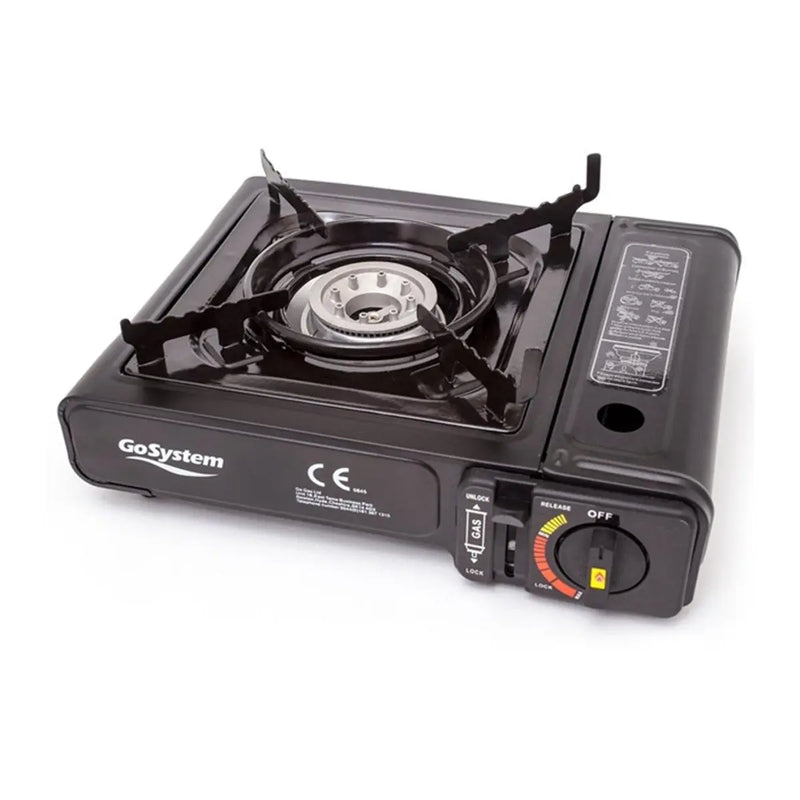 The Dynasty Compact Stove II by GoSystem offers reliable single-burner performance, ideal for small camping excursions, featuring a convenient piezo auto-start ignition system.