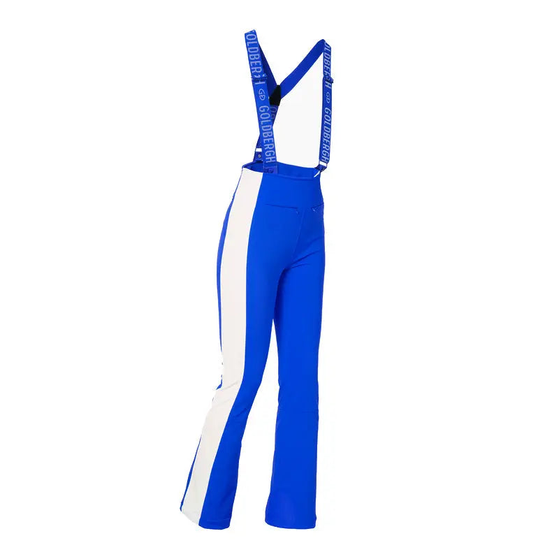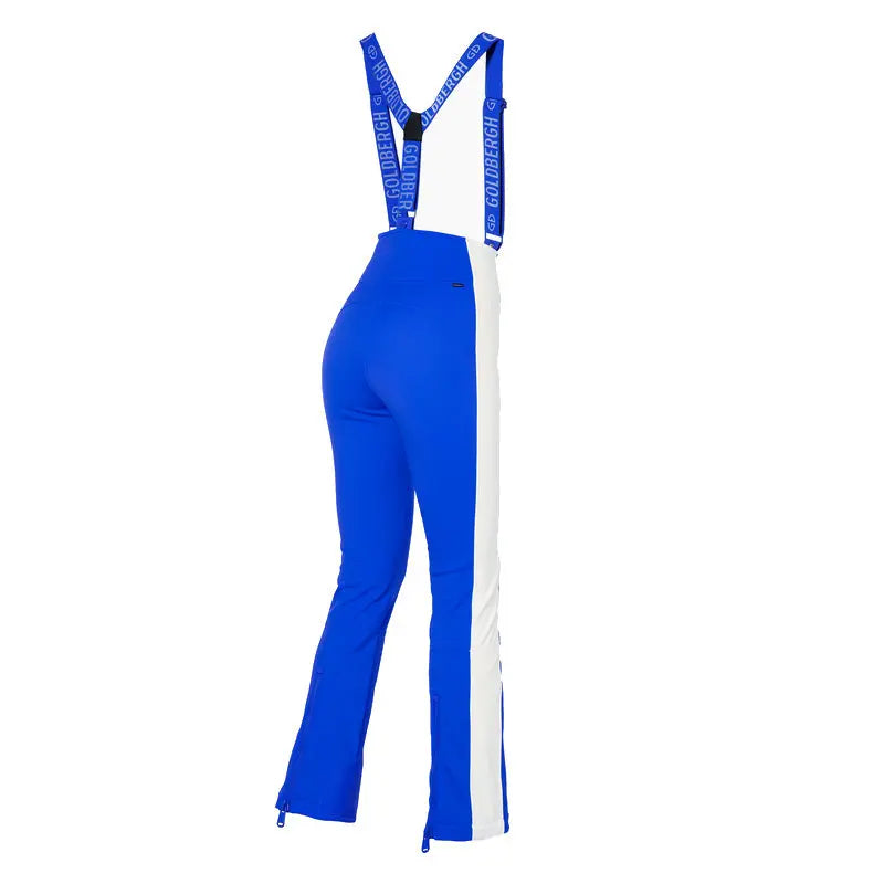 The Goldbergh HIGH END Ski Pants combine comfort and functionality in a sleek softshell salopette design. With detachable elastic suspenders for a secure fit, these pants offer a slim silhouette that’s both flattering and practical. Equipped with two zippered pockets, zippers at the back of the hem, and snow catchers at the bottom, they ensure warmth and protection while skiing. Made from high-performance waterproof and breathable fabrics, the HIGH END Ski Pants are ideal for all-day wear on the slopes.
