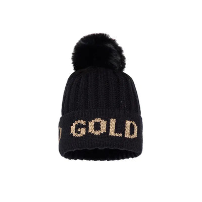 - Jacquard Knit GOLD Wording: Bold branding on the fold-over band.