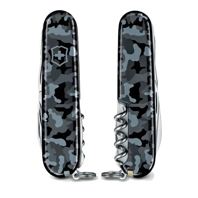 The Victorinox Huntsman-1.3713.942 is a medium pocket knife perfect for hunting, equipped with 15 functions. Swiss-made, it includes scissors and a wood saw, making it ideal for sawing wood or cutting ropes when climbing, hiking, and camping.