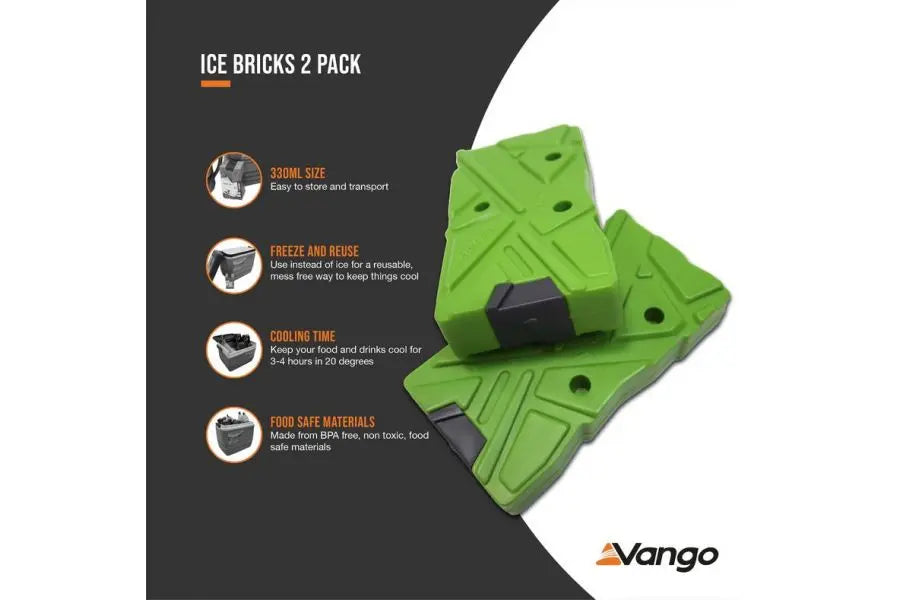 Enhance your outdoor adventures with Vango Pinnacle Ice Bricks, designed to keep your refreshments cool longer without the mess of traditional ice, ideal for various camping and picnic scenarios.