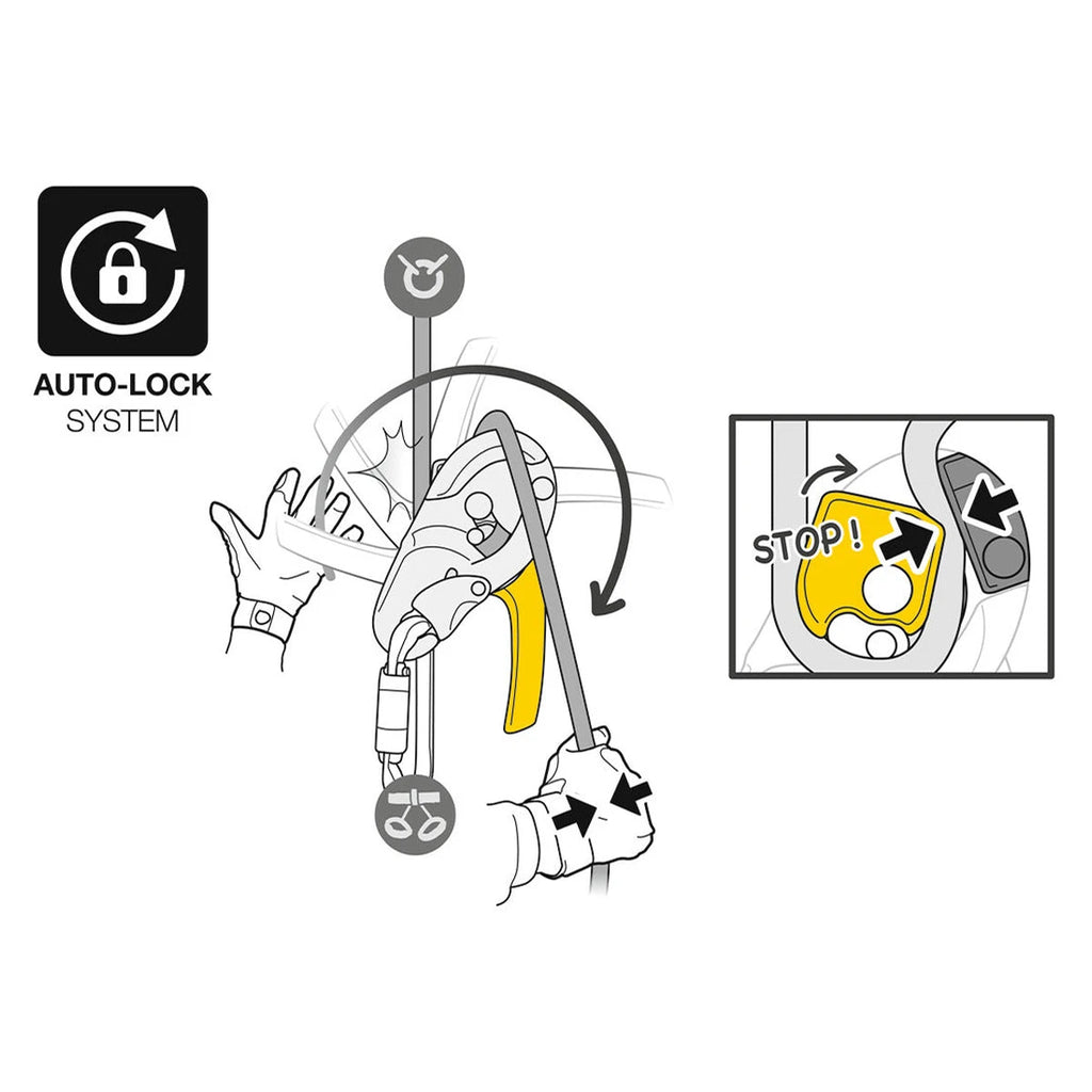 - Locked rope can be taken up without handle manipulation, ideal for reversible haul systems or short ascents.