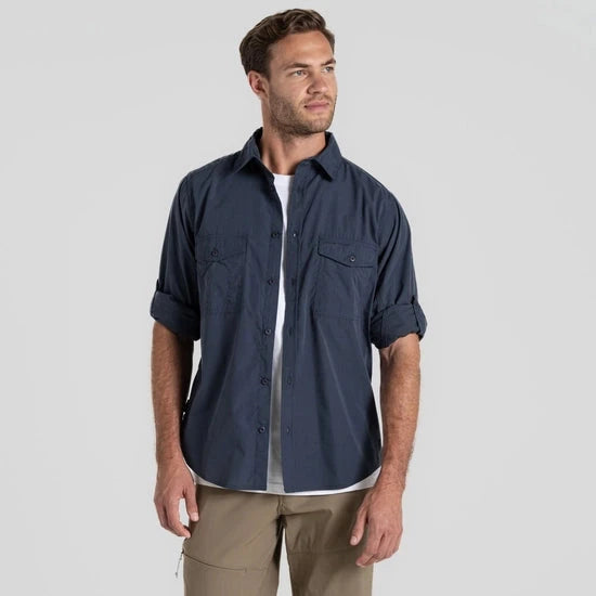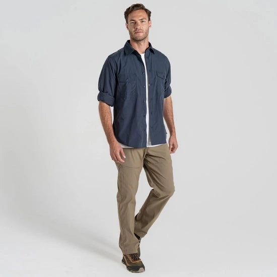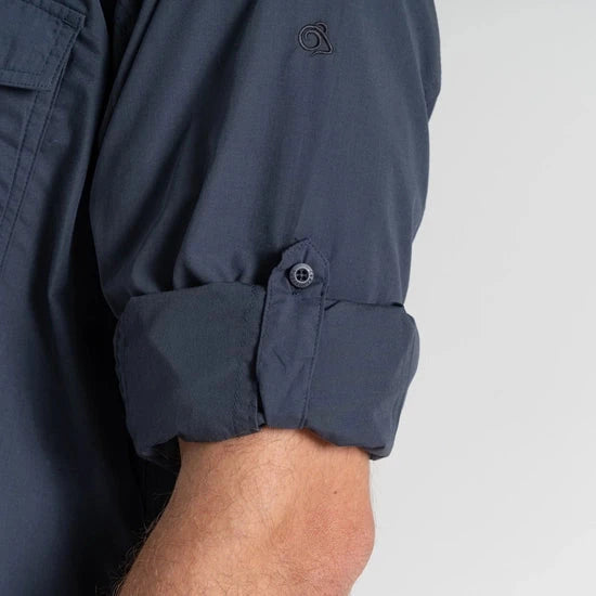 The Craghoppers Kiwi Long Sleeved Shirt is your reliable companion for outdoor adventures. Constructed from tough, part-recycled polyester-cotton fabric, this relaxed shirt is designed to handle challenging conditions. With NosiDefence insect barrier, UPF 50+ sun protection, and practical features like a flip-up collar and drying loops, it ensures comfort and durability year-round.