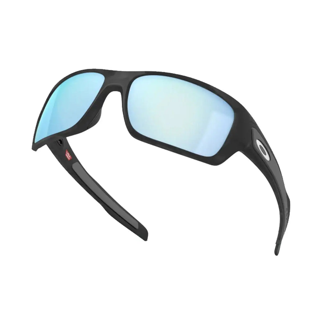 Step up your game with Oakley's Turbine Matte Black Prizm Deep Water Polarized sunglasses. Perfect for sports, offering clear vision and style.