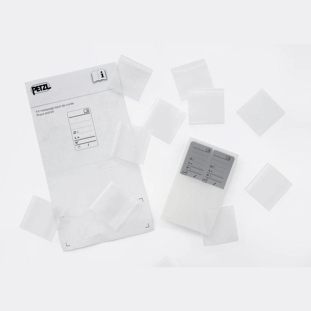 Ensure safety and organization with the Petzl Rope End Identification Kit. Ideal for professional climbers, this kit facilitates easy identification of individual ropes. Whether replacing old labels or labeling new ones, this kit offers convenience and durability. The kit includes twenty pre-printed rot-proof labels, ensuring clear legibility of rope details such as length, diameter, type, individual number, manufacturer, and date of manufacture. Additionally, it contains twenty abrasion-resistant heat-shrink sheaths, compatible with ropes ranging from 10.5 to 13 mm in diameter.